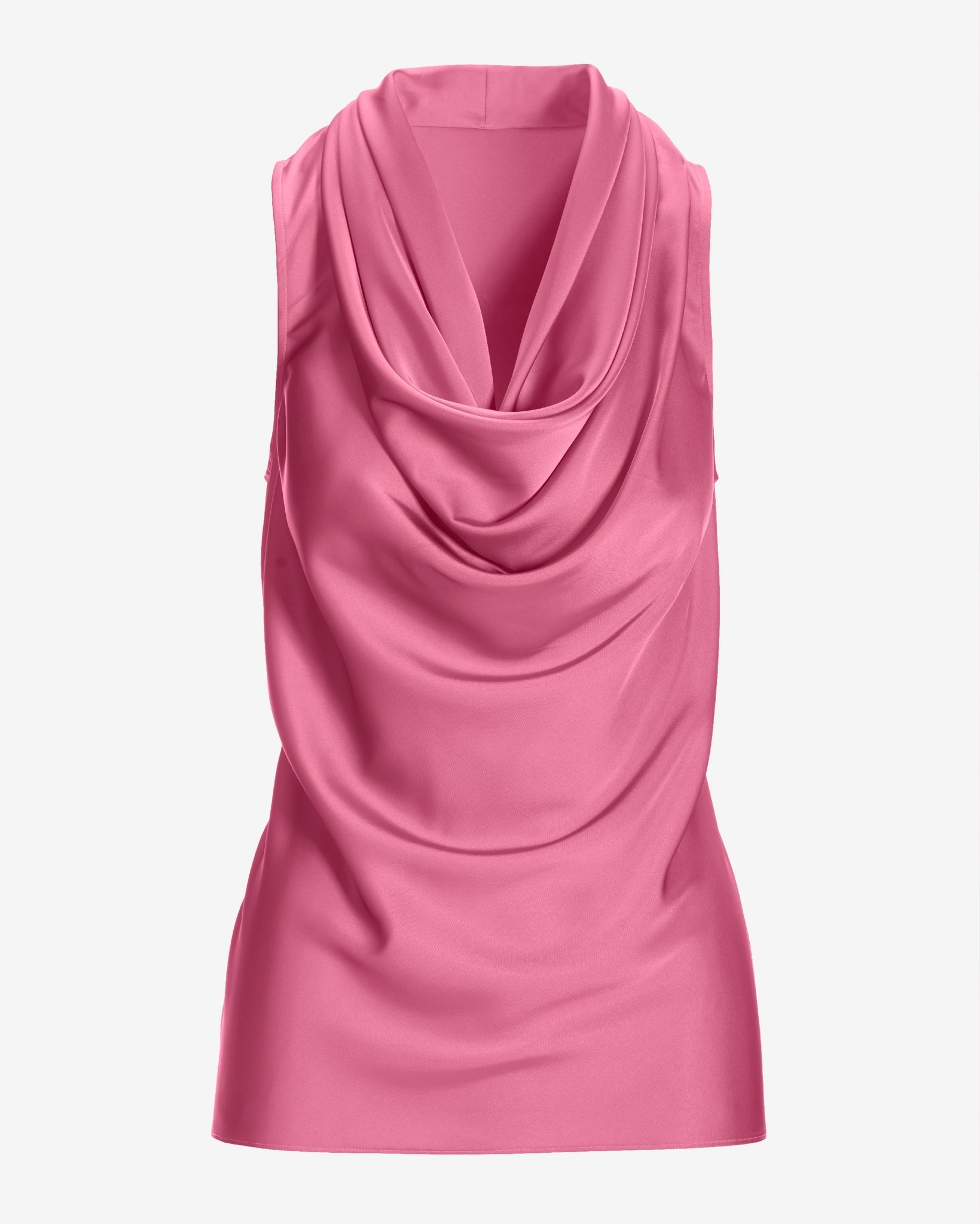 Marilyn Cowl-Neck Charmeuse Blouse Aurora Pink