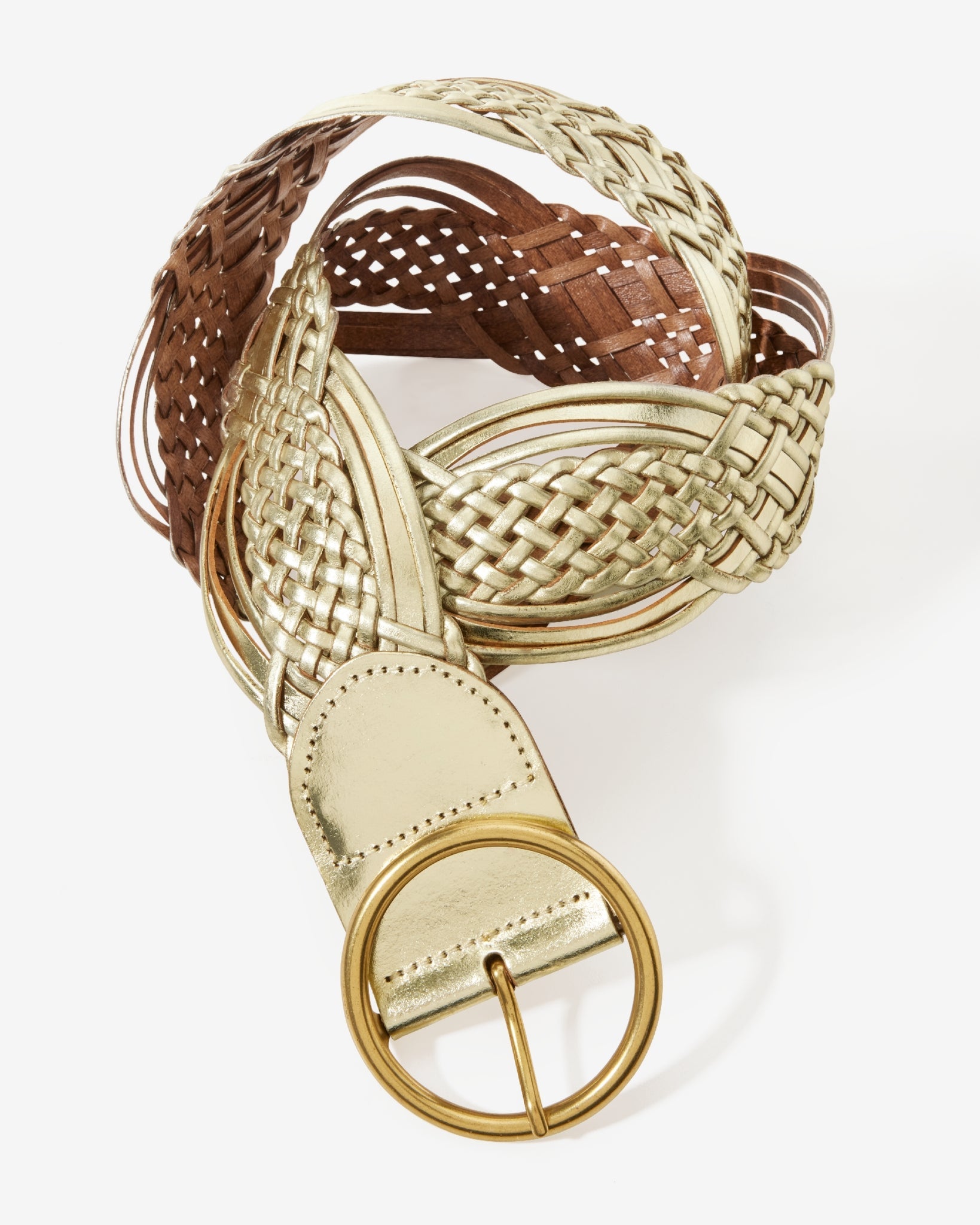 Metallic Braided Buckle Belt Gold