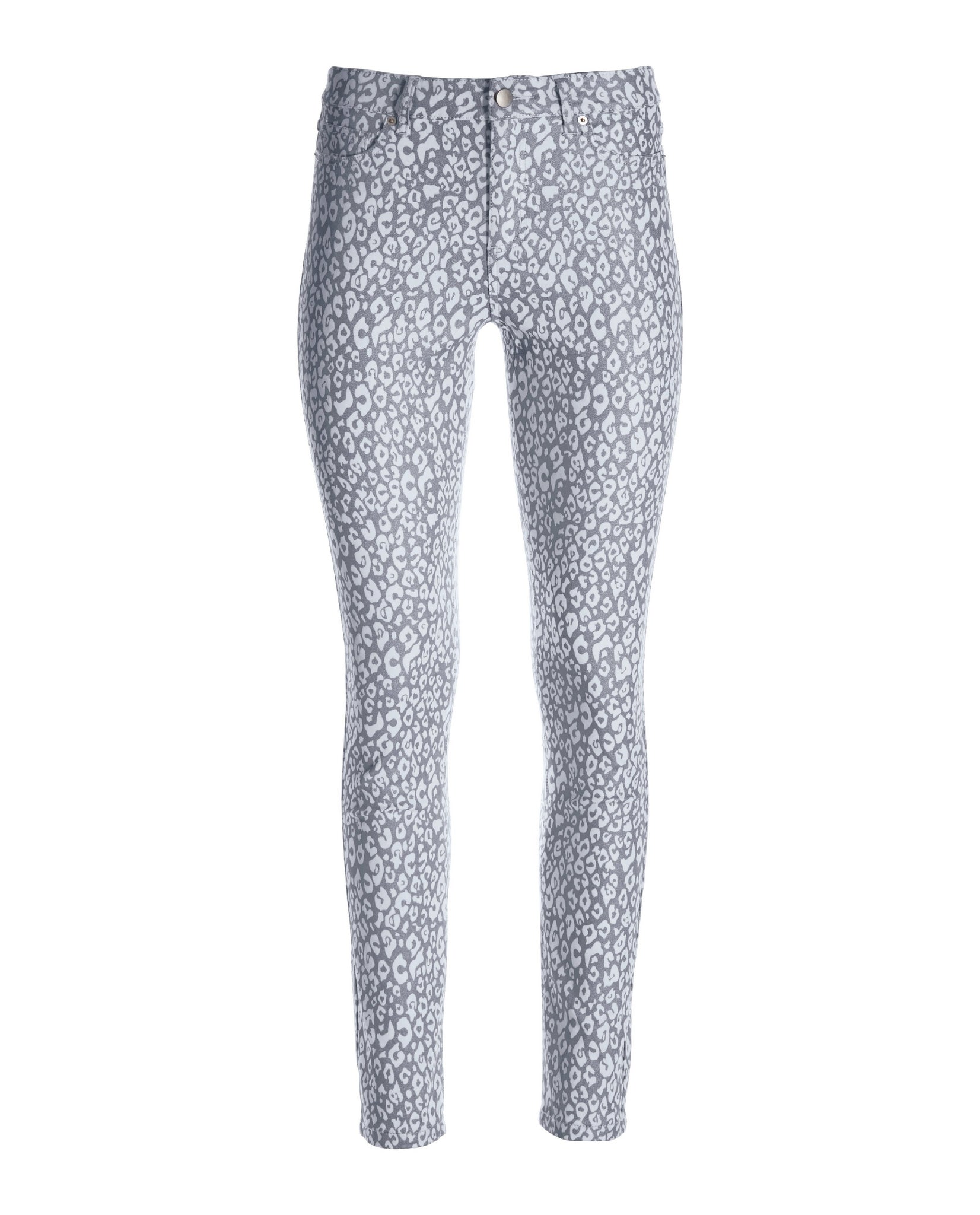 Day-to-night denim never looked as chic as this metallic snow leopard ankle jean, designed in a slim silhouette with a hint of stretch for comfortable wear with casual sneakers and a basic tee or stiletto pumps and a button-up blouse.