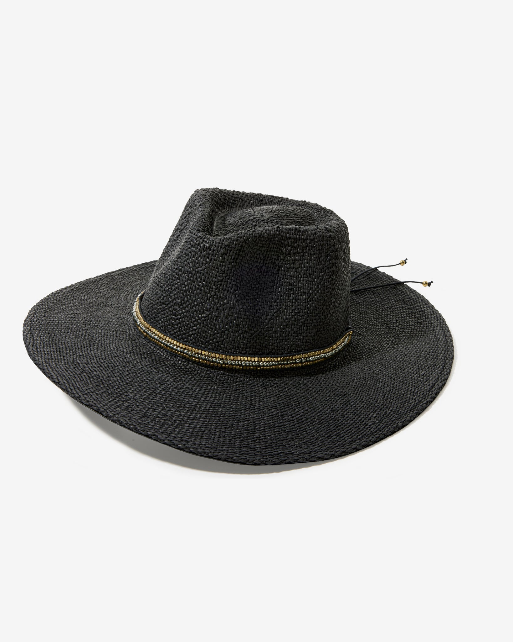 Elevate your sun protection with the elegant Monte Carlo Straw Hat. Featuring an ultra-chic gold- and silver-tone beaded trim and a versatile silhouette, it’s a must-pack for getaways as well as a stylish accessory for any day.