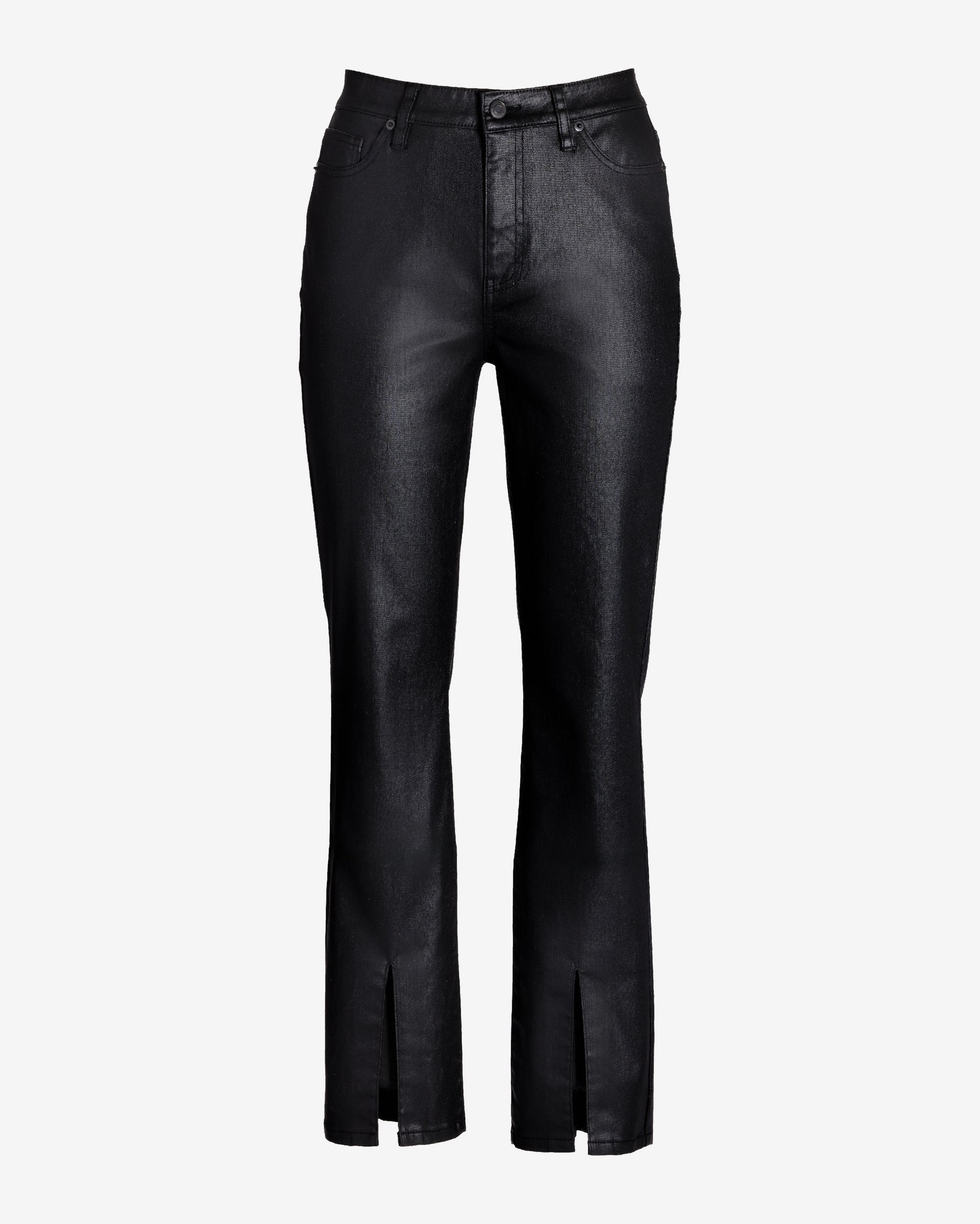 Newport High Rise Slit Front Coated Slim Straight Jean Black