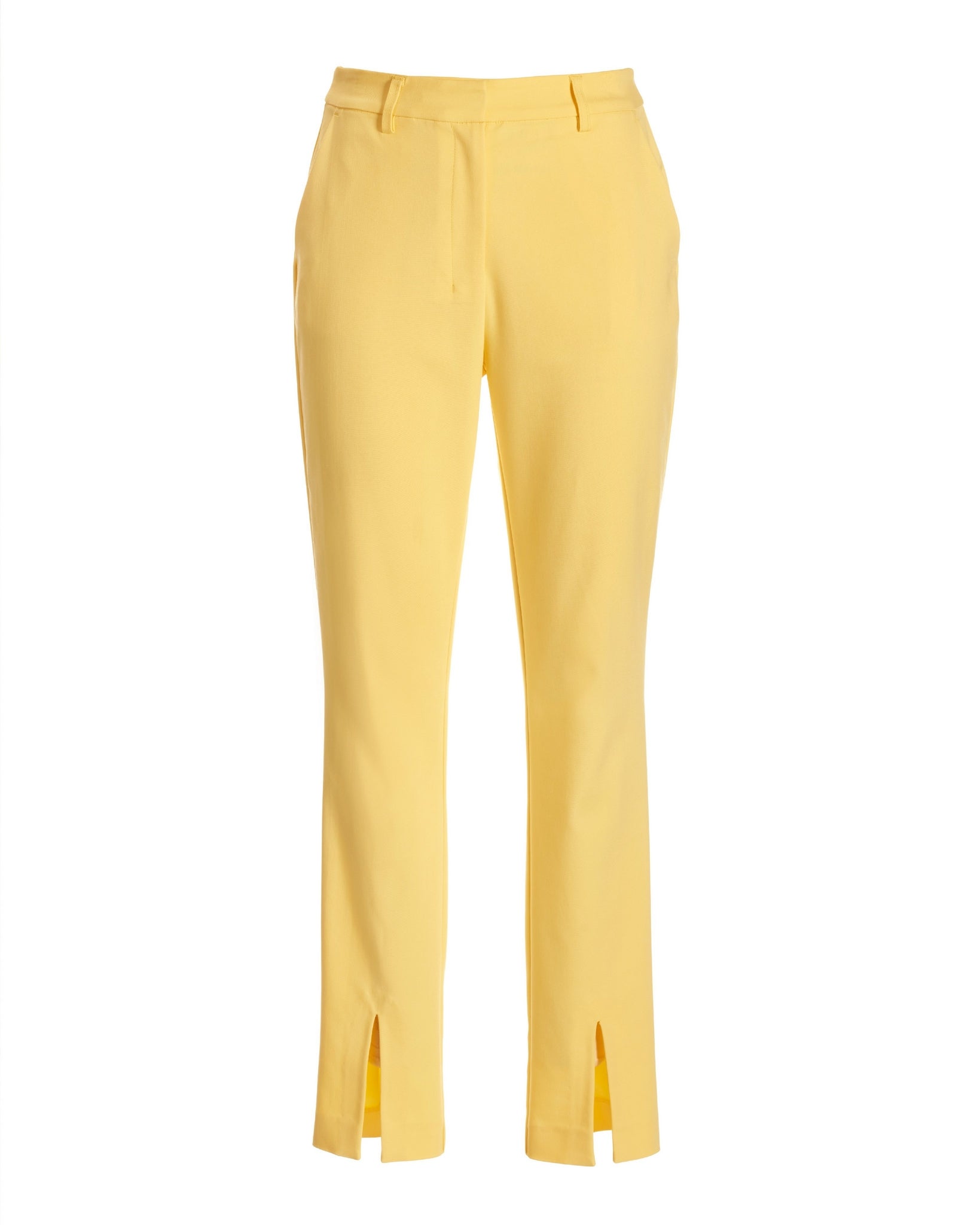Newport Modern Slim Straight Leg Slit Front Trouser Pant Lemon Drop