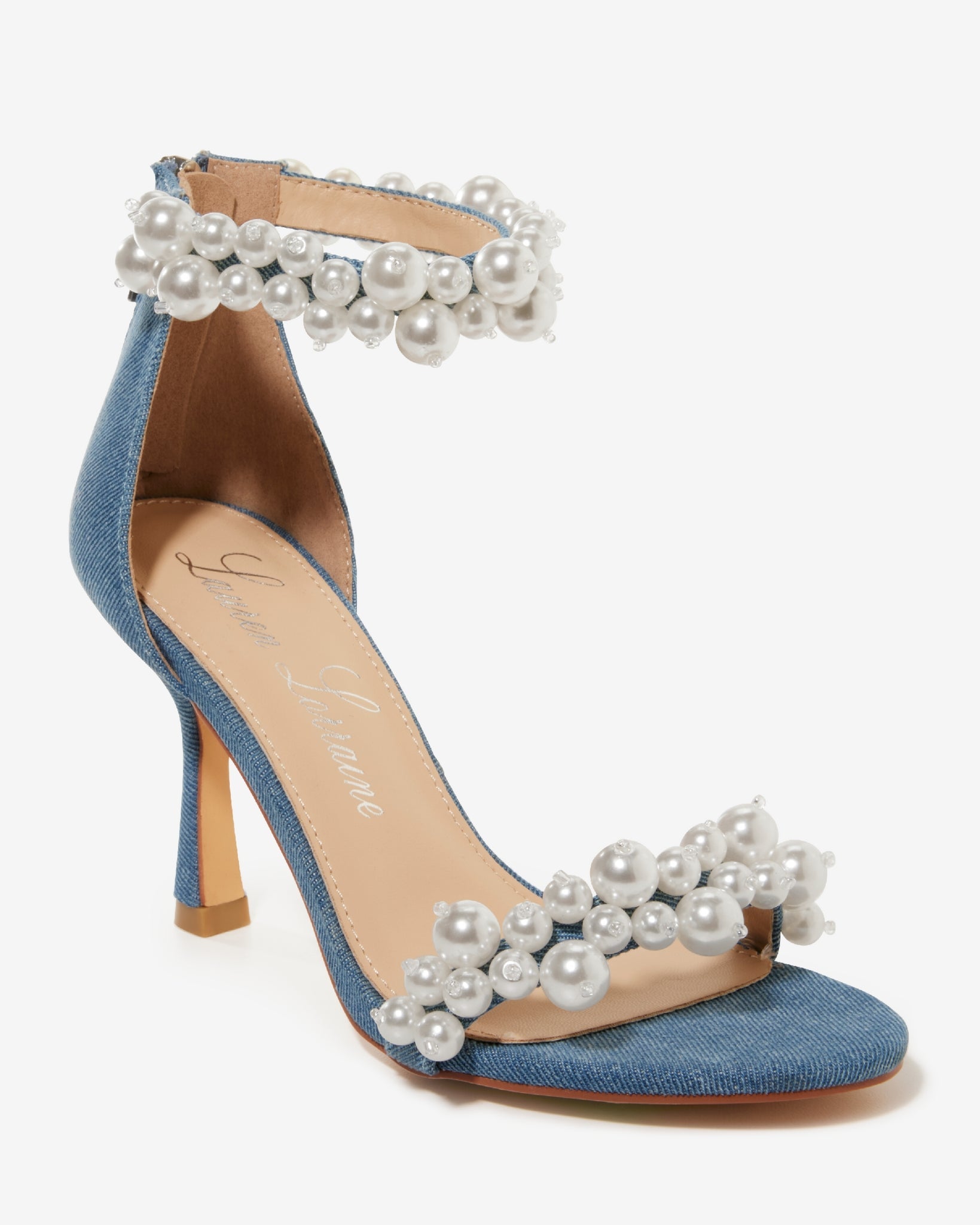 Elevate your shoe game with this pearl-embellished ankle-strap heel. Designed with a chic denim upper, this standout style features faux pearls along the toe and ankle straps for a touch of glam. A back zip closure ensures an easy fit, making it the perfect statement shoe for day-to-night dressing.