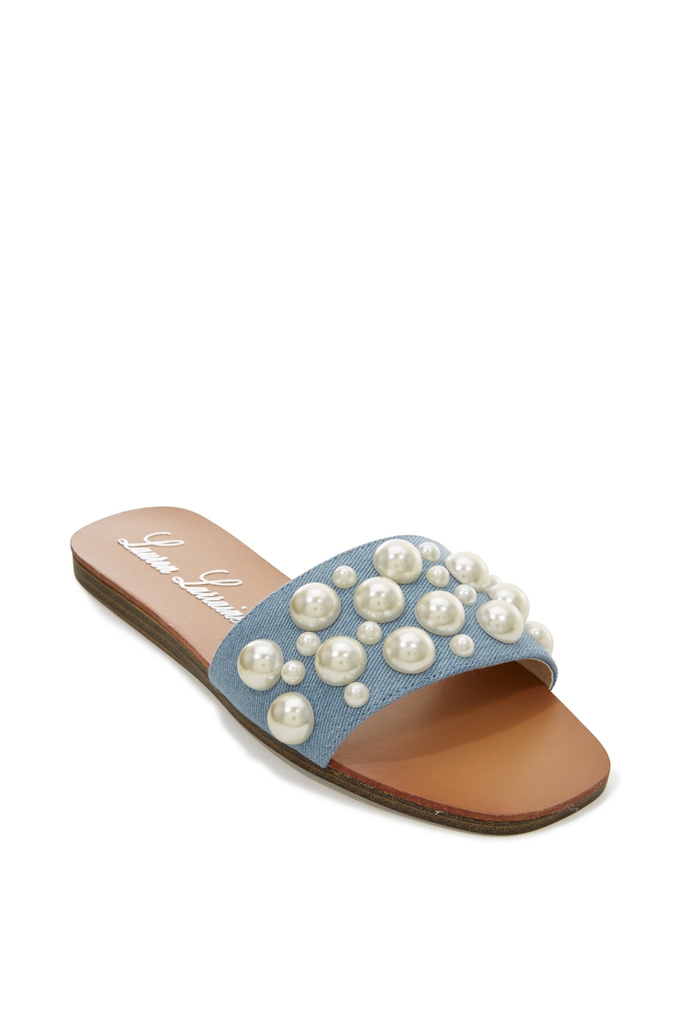 Slip into the most effortless slide sandal of the season, adorned with lustrous pearl baubles atop a classic denim strap.