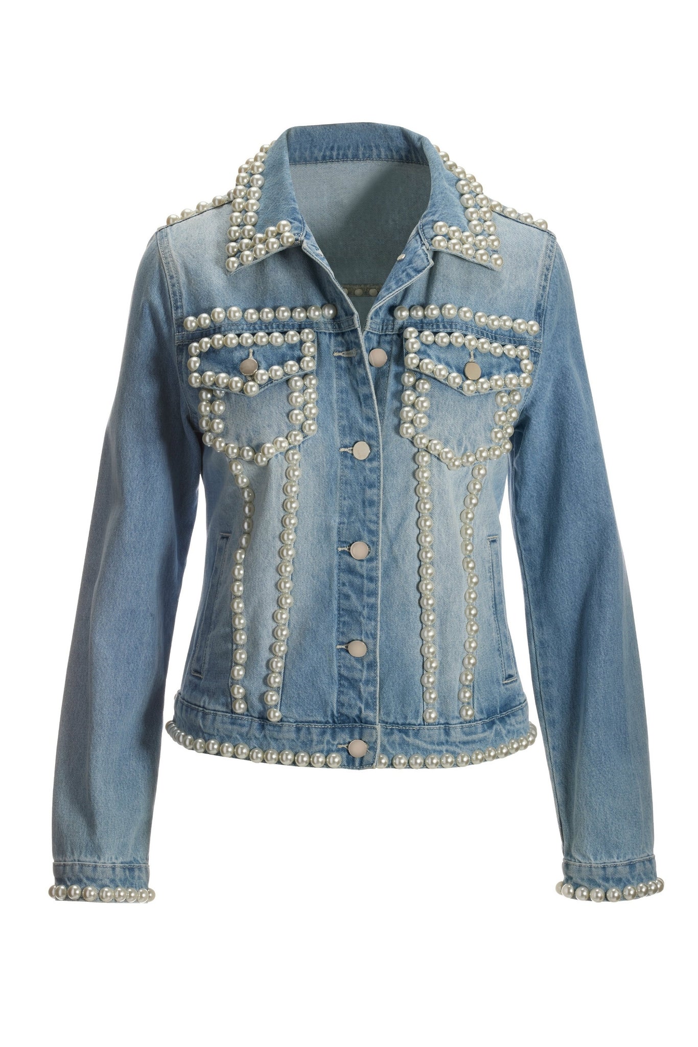 Lavishly embellished with showstopping pearls, this statement jacket elevates any outfit with glamour and flair. We love it paired to white jeans and shorts or dressing down a little black dress.