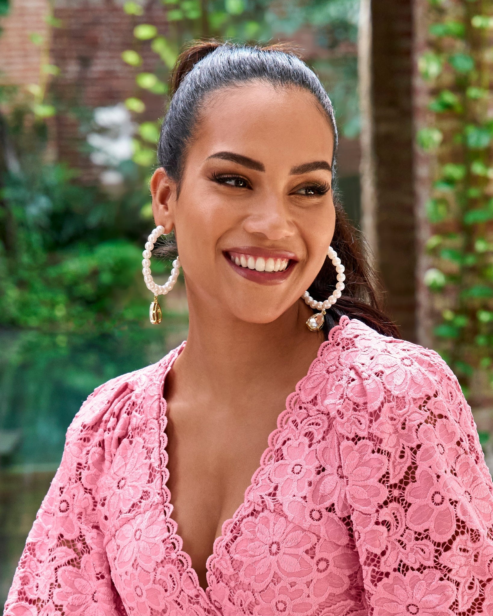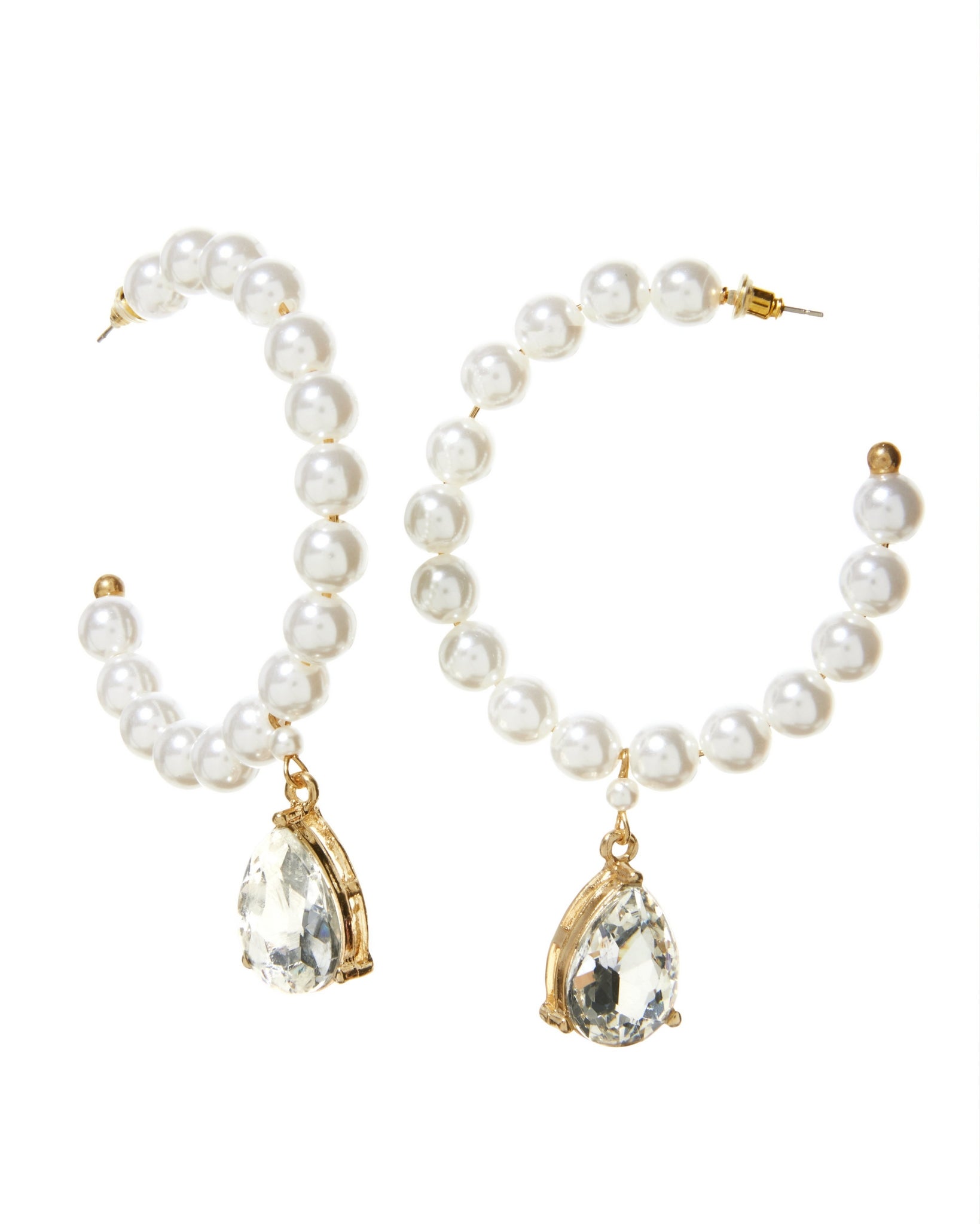 Elevate your outfit with an elegant mix of materials via our open pearl hoop earrings with playful gem dangles and gold-tone accents. Perfect for adding a unique touch to all of your day and night looks.