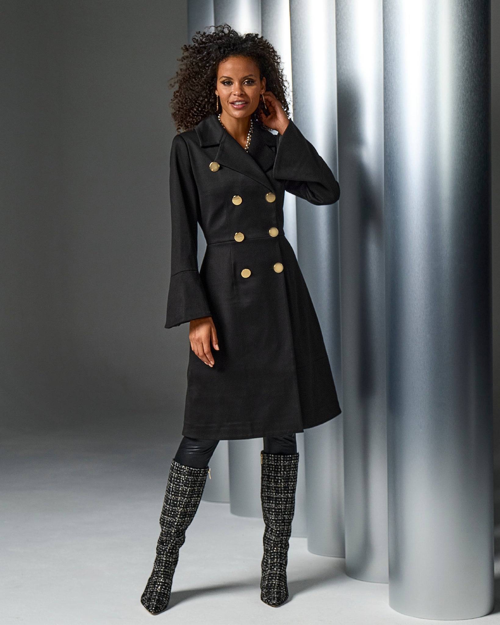 Peplum Double Breasted Coat Black