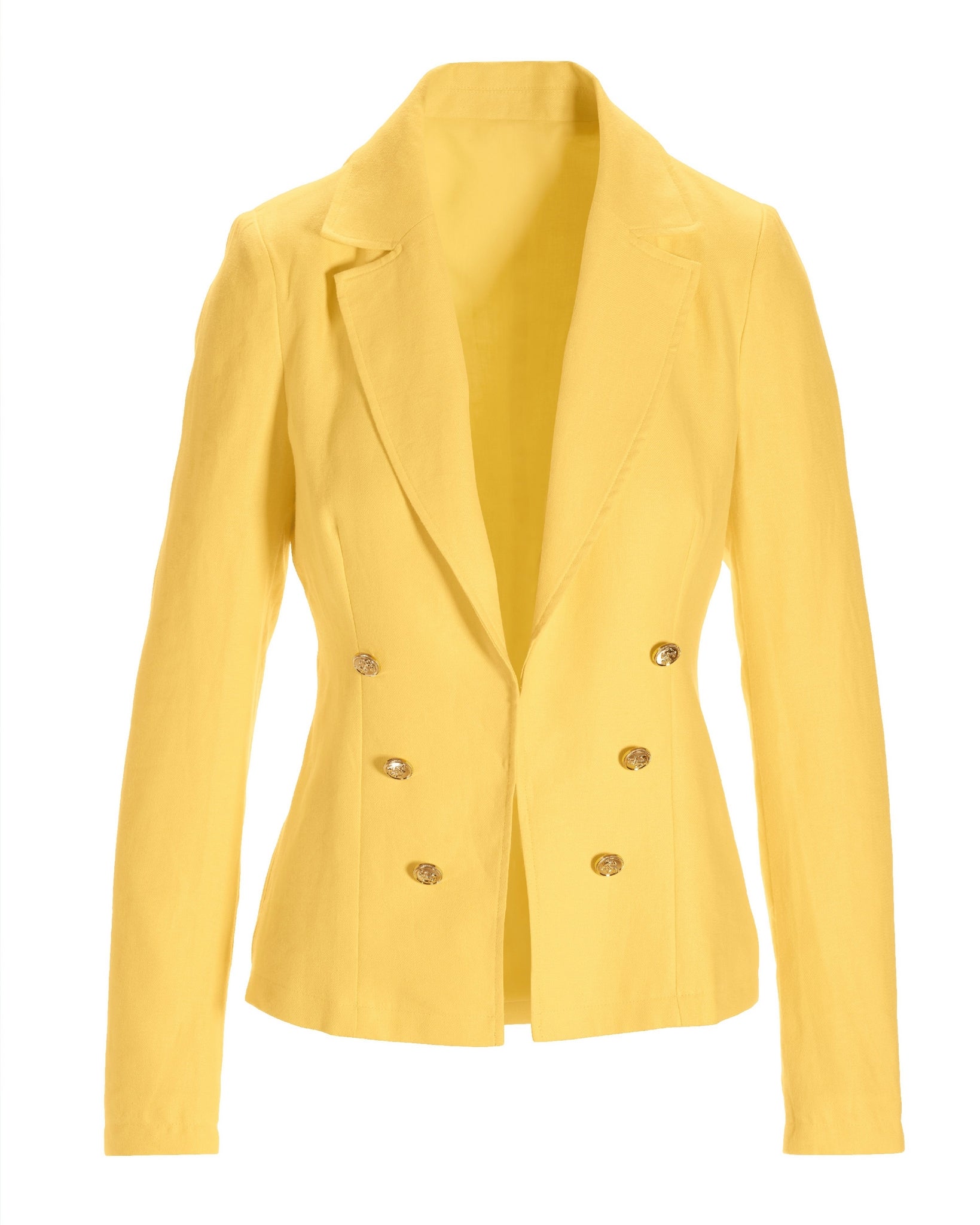 Our linen blazer, cut from crisp 100% linen, offers the polished comfort you need for the warmer months. Design highlights include a notched lapel, light shoulder padding for structure, and crested button details. Pair with the coordinating linen trousers and V-neck top for a chic suited look.