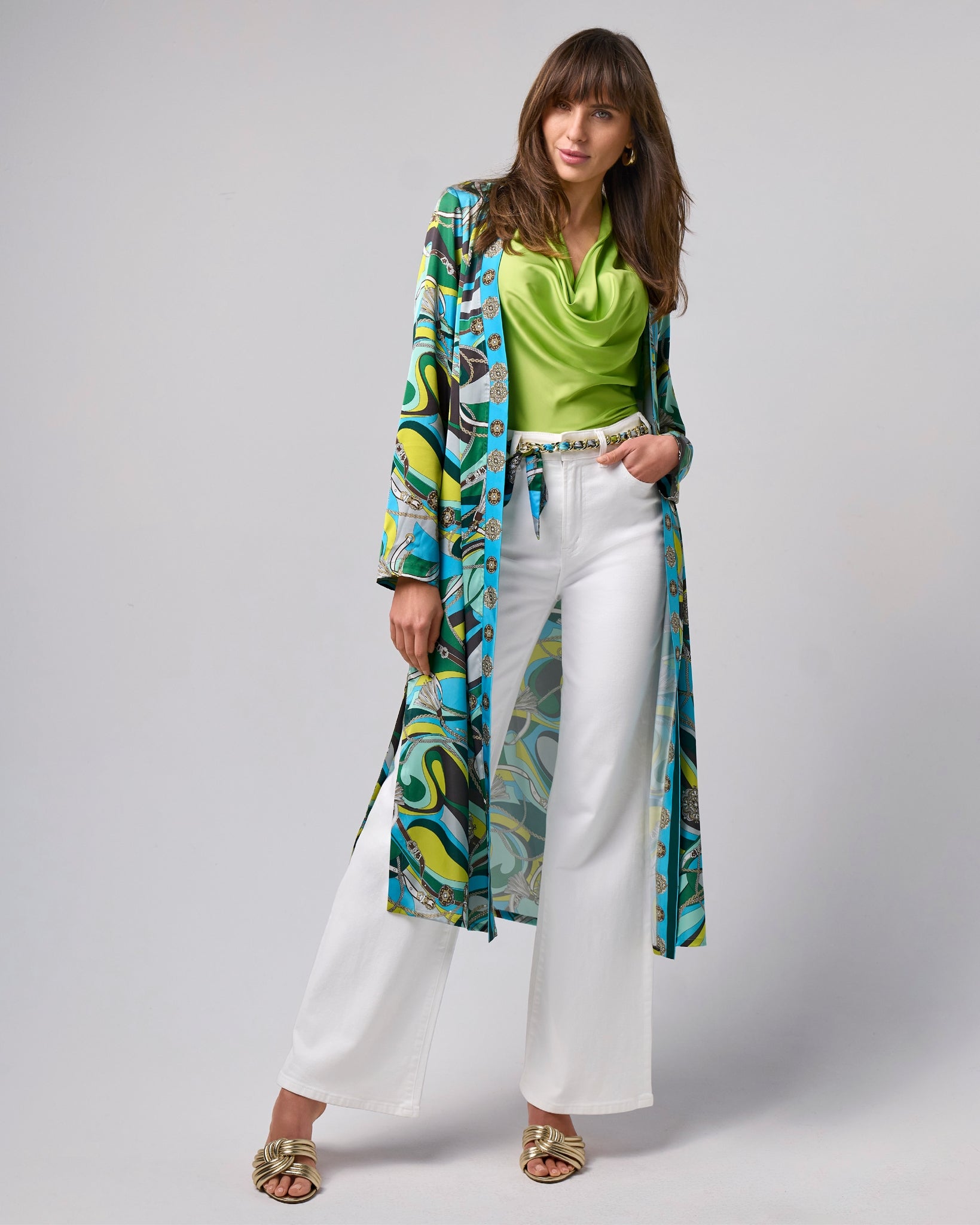 Add a bold touch to your outfits with our print chain belt. A polished gold-tone chain and vibrant printed fabric make it a versatile accessory to cinch dresses, skirts, and trousers with effortless style and a pop of color.