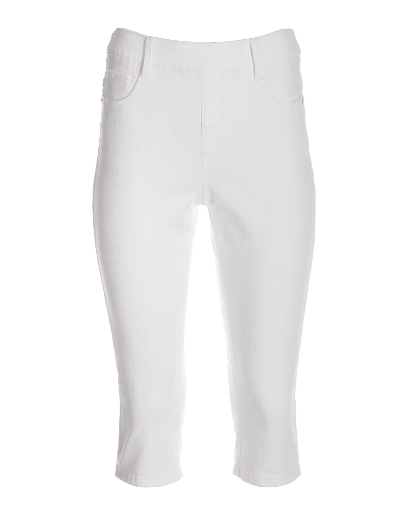 With just the right amount of easy stretch for all-day wear, this comfortable pull-on jean features the perfect pedal-pusher length to showcase your shimmery summer sandals paired with effortless tops and tees.
