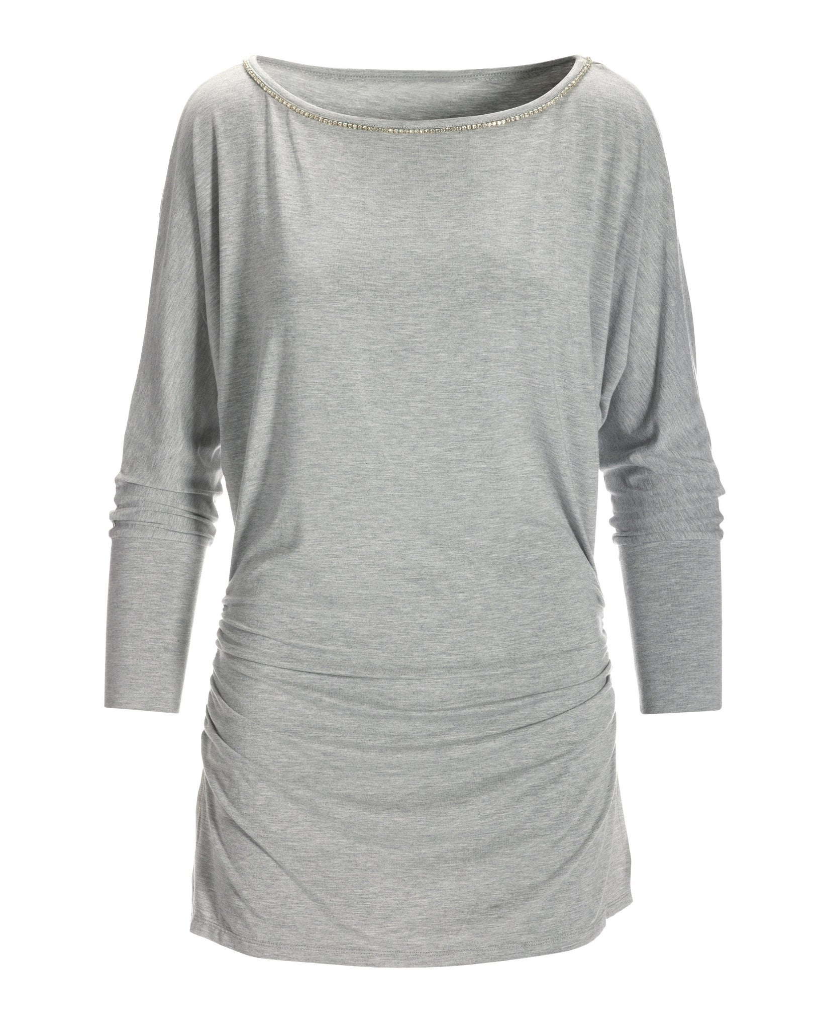 Rhinestone Slouchy Ruched Tunic Heather Gray