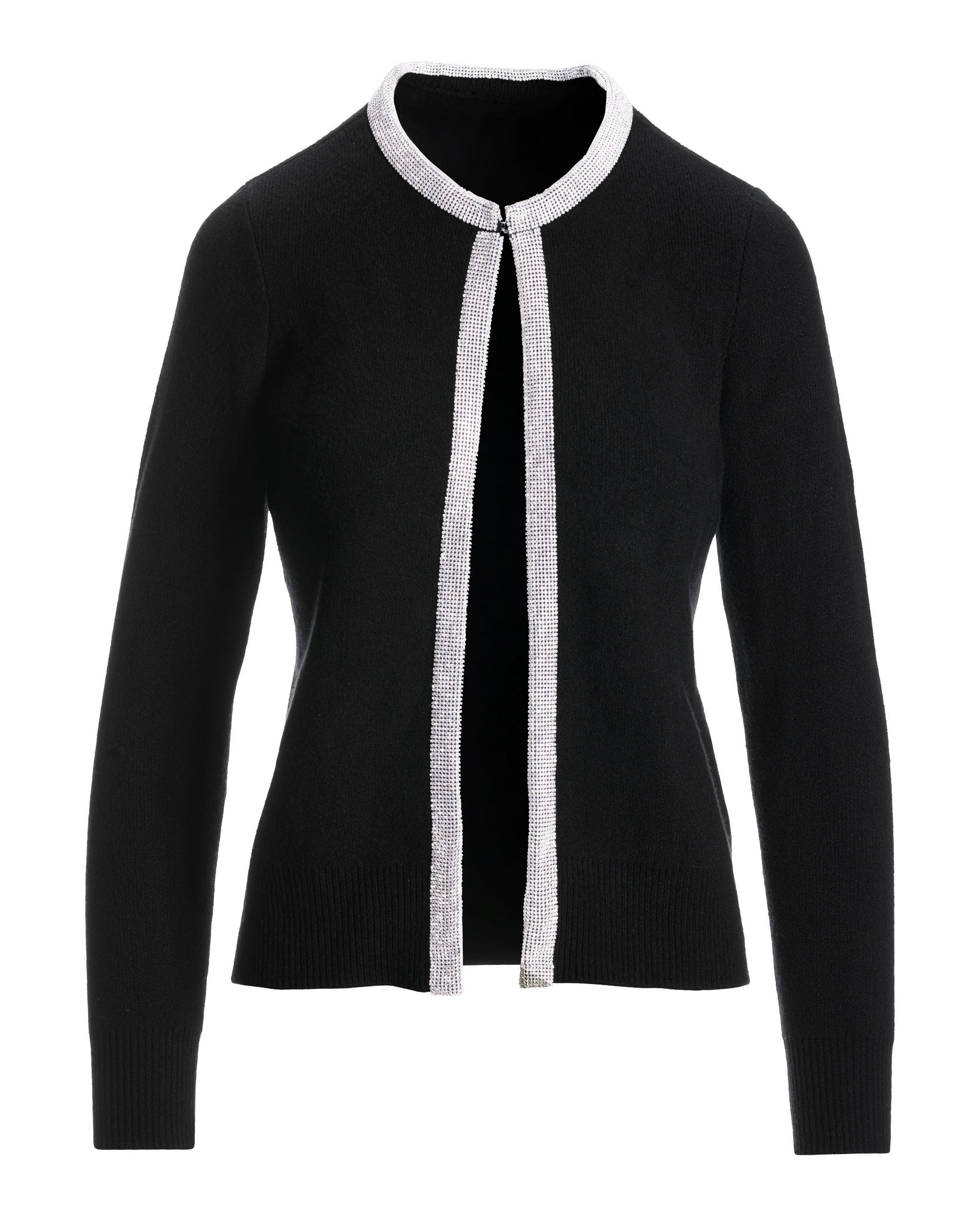 Must-have cardigan gets a glam update from a rhinestone trim placket. Layer over casual tops with jeans or dressy charm blouses and pants.