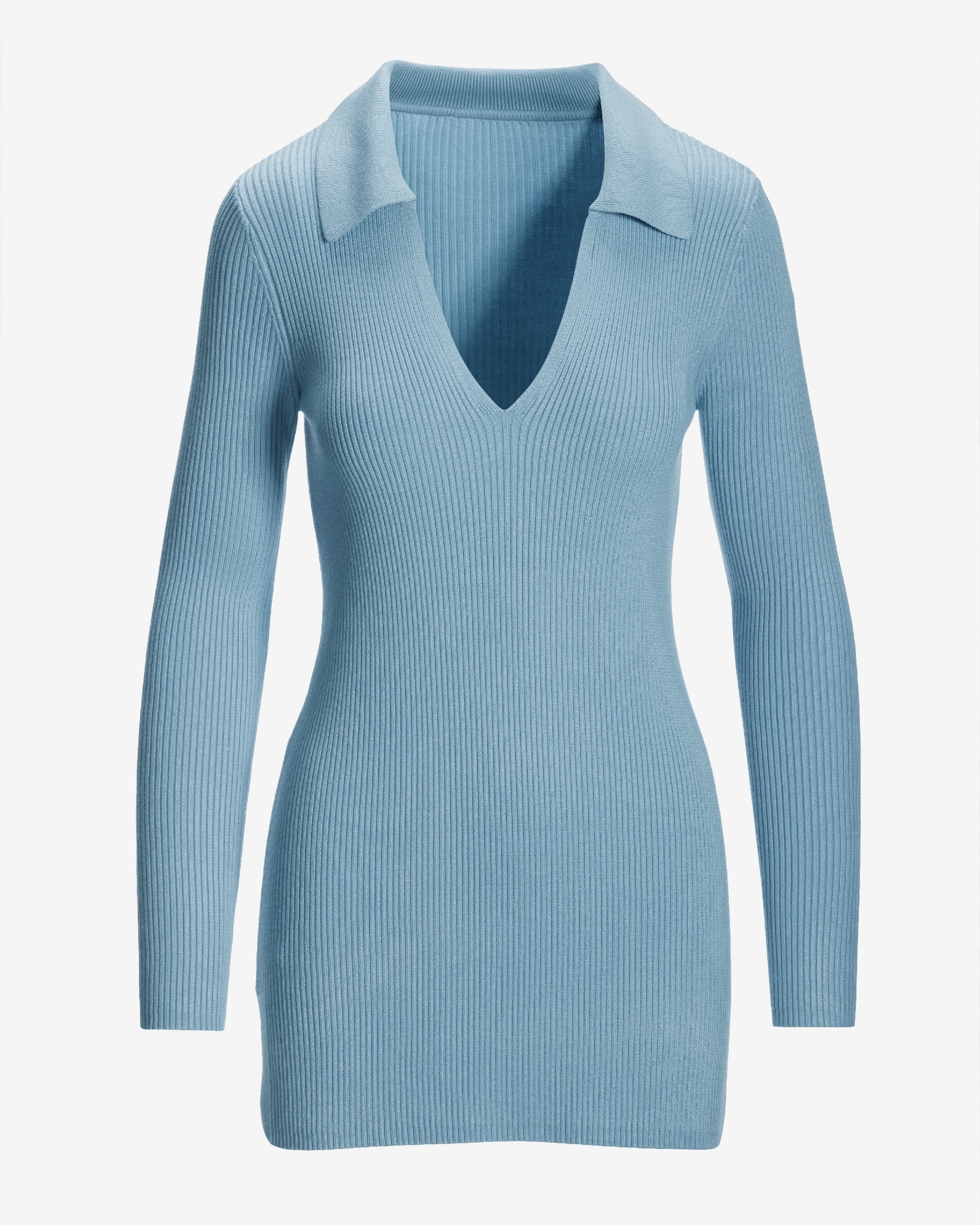Ribbed Collar Tunic Sweater Clear Blue Sky