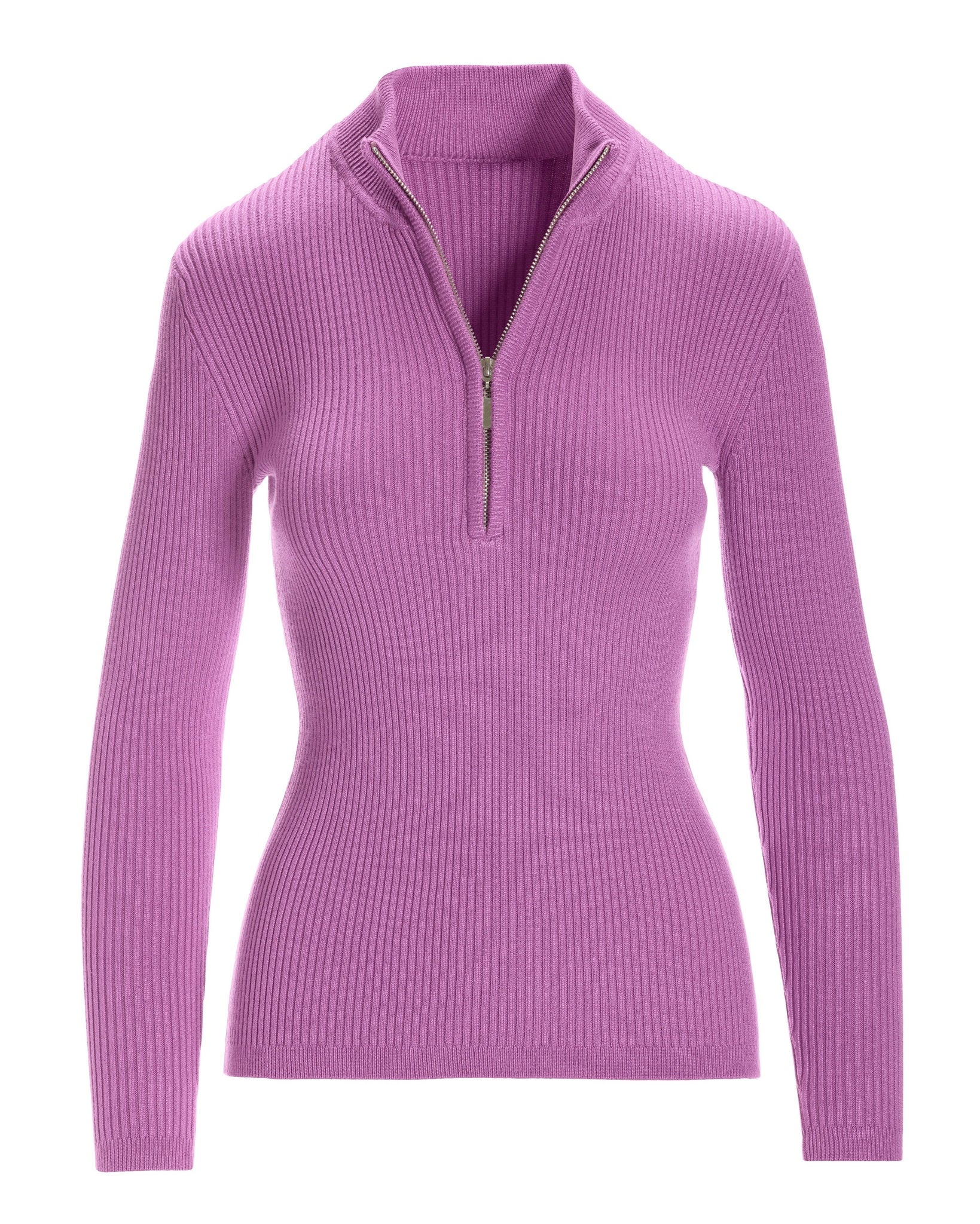 As soon as you slip this casual zip-up ribbed sweater on, you can't help but notice its luxurious feel and flattering fit. And what's better? The sweater material is softer, more finely knitted and imparts a hint of sheen. Outfit yourself with everyday ease in this versatile look that goes beyond basic.