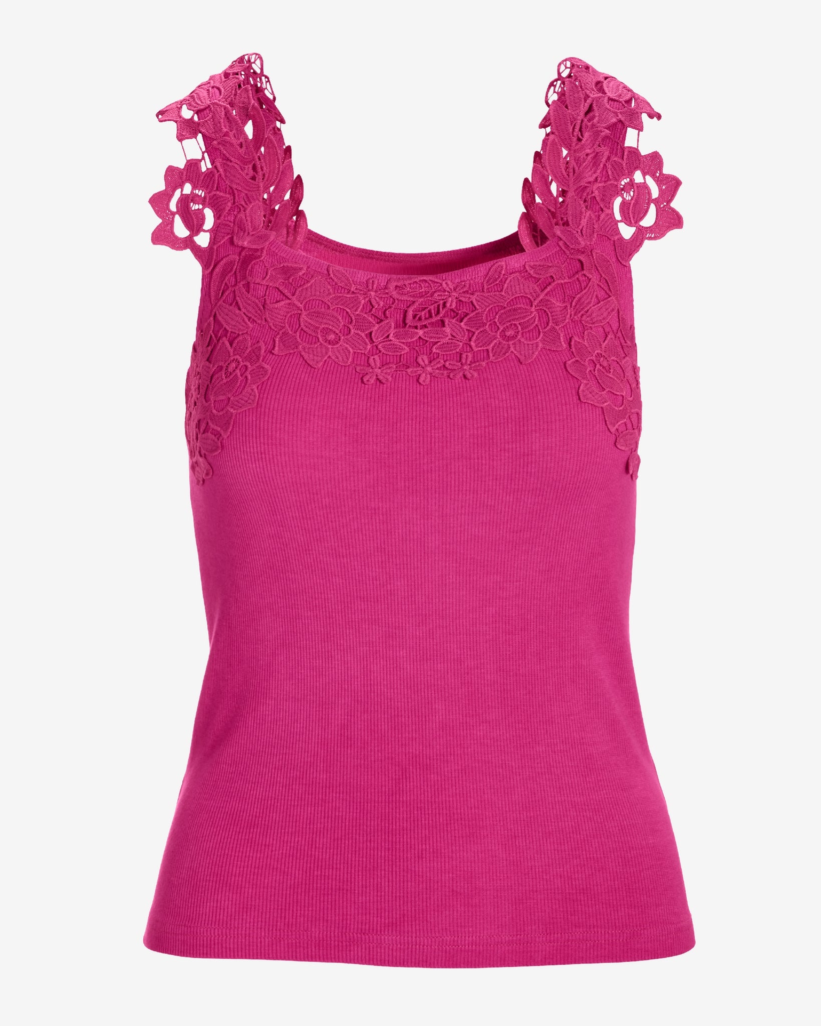Ribbed Lace Applique Knit Tank Raspberry Rose