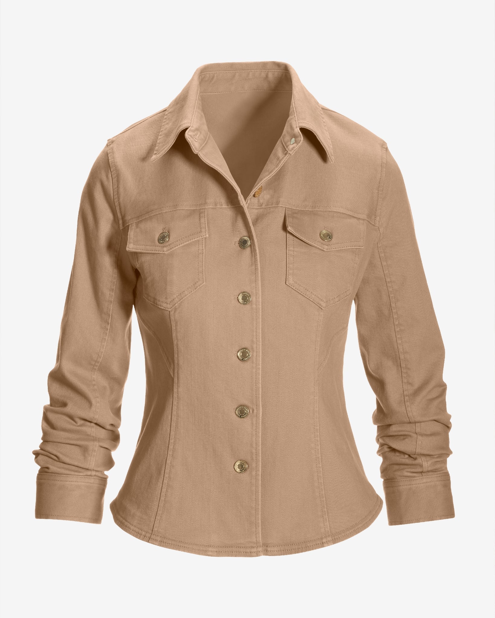 Our Ruched Sleeve Shaped Denim Jacket offers a new take on the classic denim jacket. Tailored with princess seams, it ensures a flattering, form-fitting silhouette. Stay warm and chic with this versatile layer designed for the season ahead.