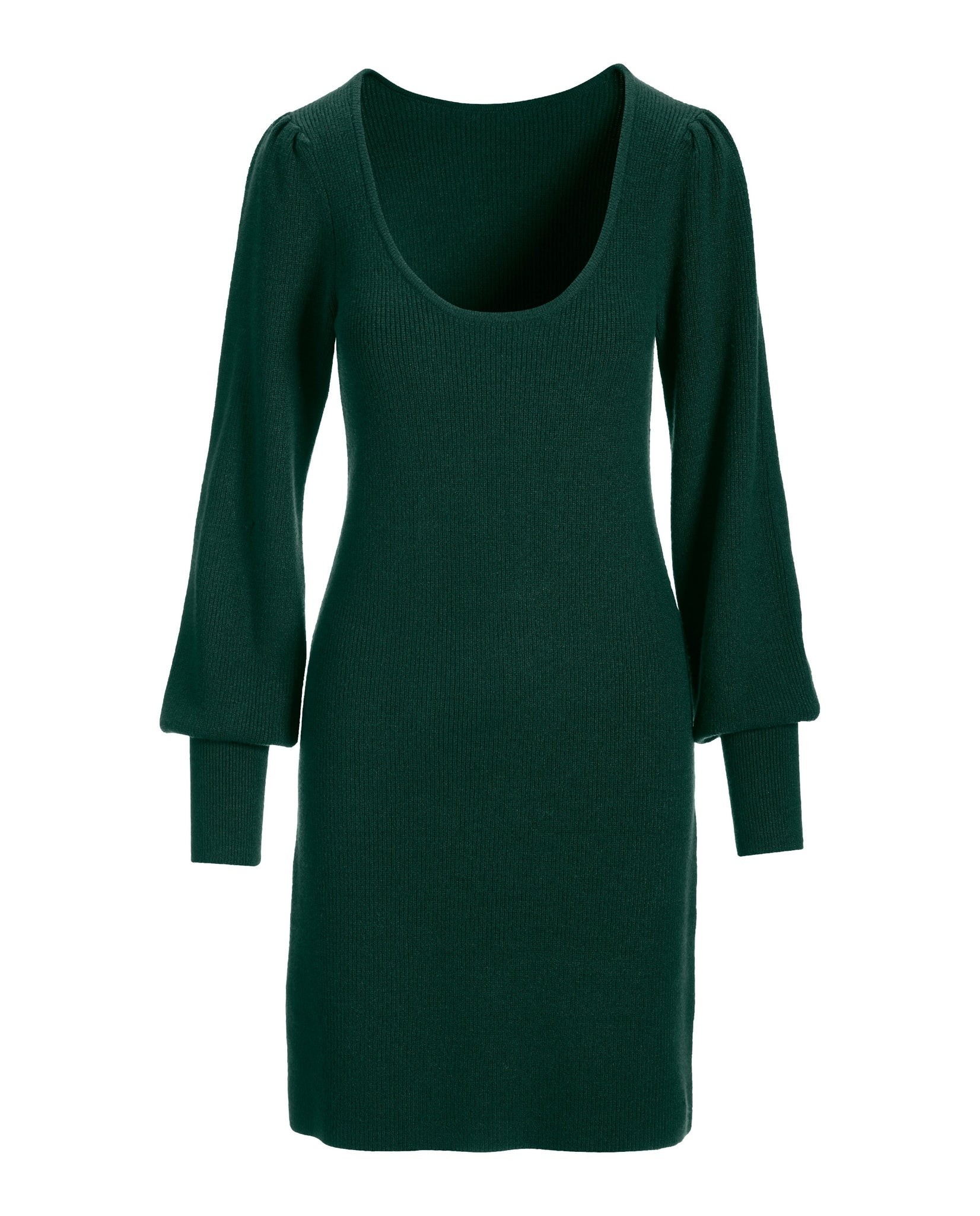 Scoop Neck Balloon Sleeve Sweater Dress Deep Emerald