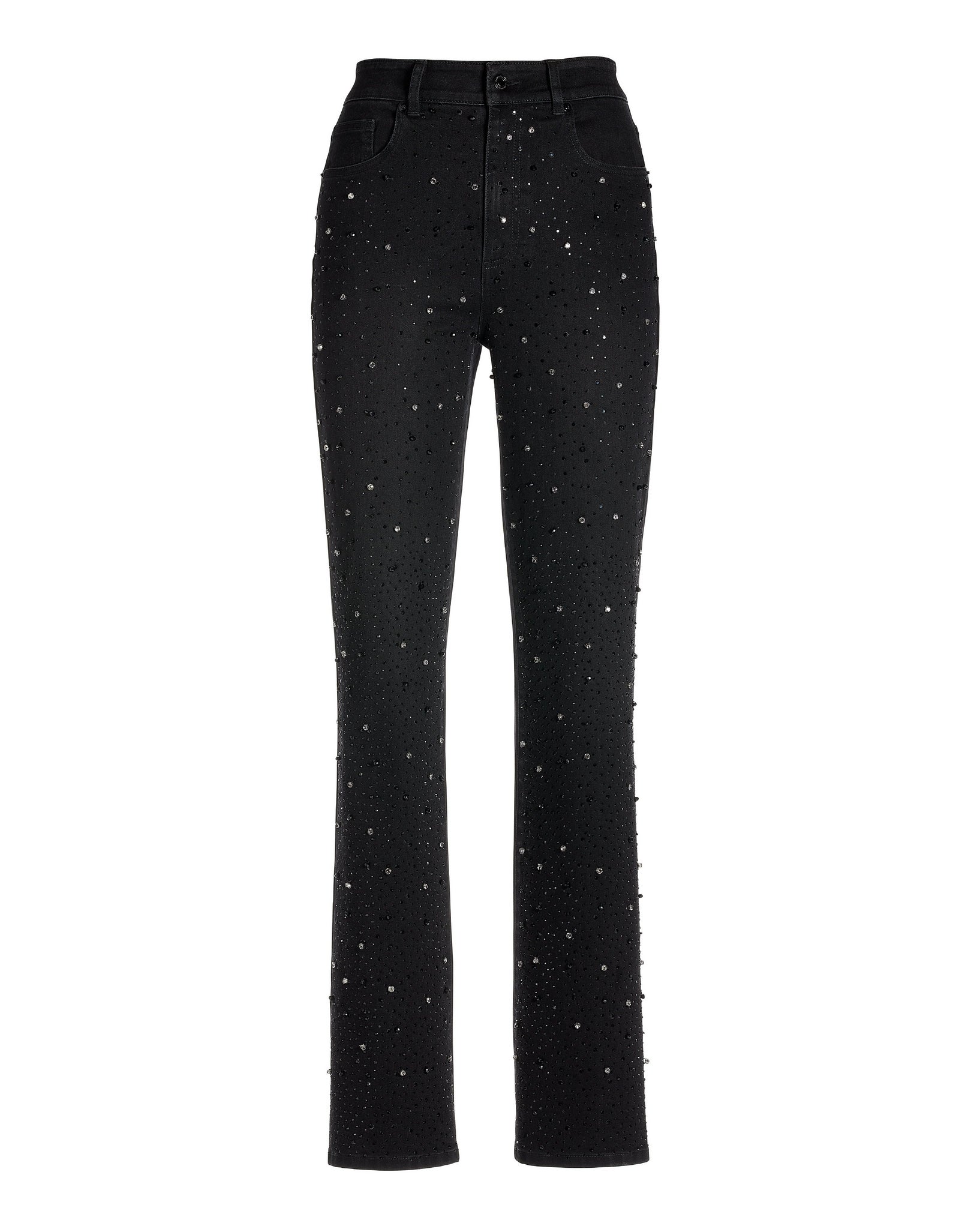 Dimensional crystals add dazzling style to this washed black denim jean. Step up your wardrobe looks in this high-rise waist jean that's fitted through the hip with a straight-leg shape from hip to hem. Like the Sedona fit? We suggest trying our other versatile Sedona jean and pant styles.