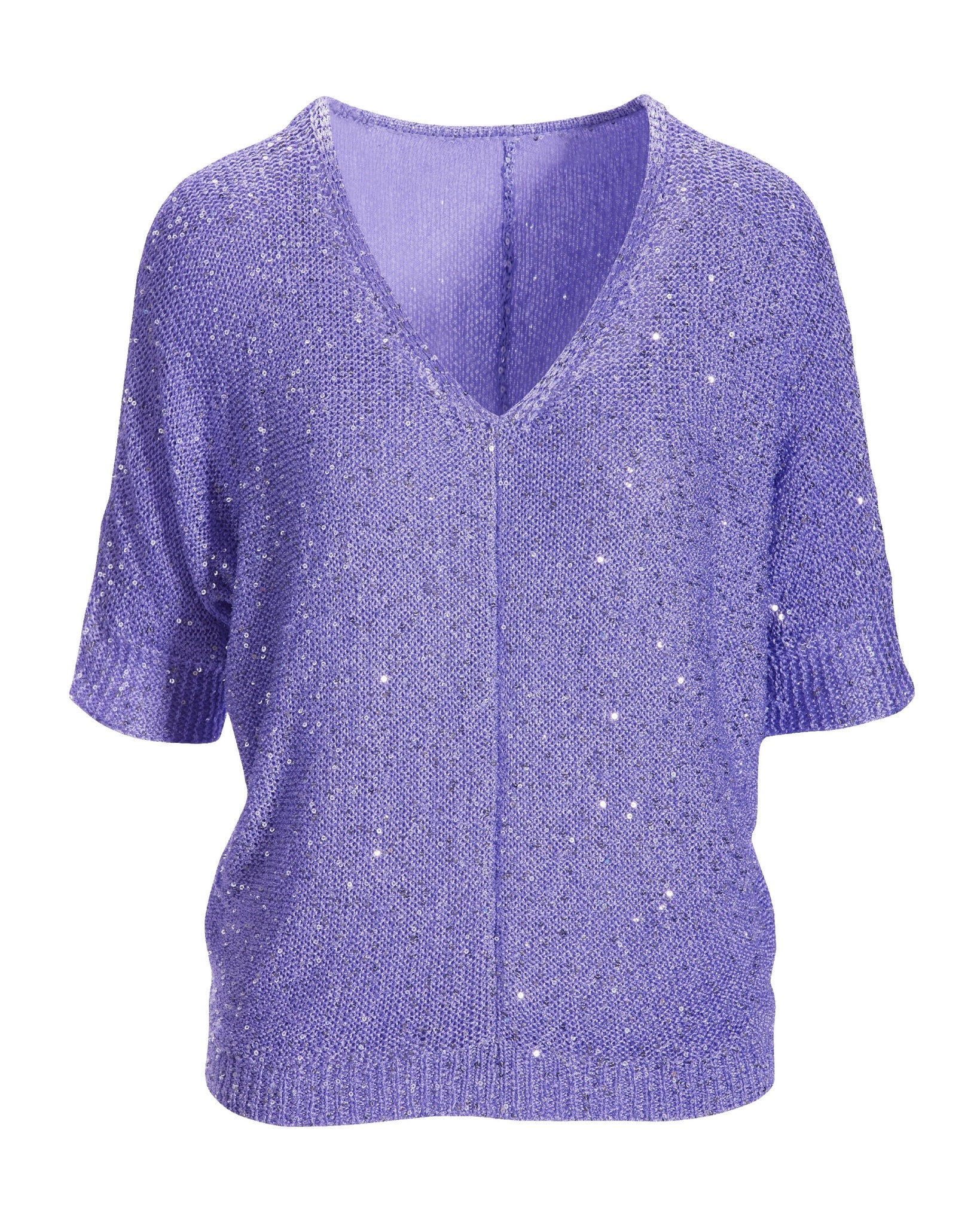 Our V-neck sweater heroes a soft yarn with a sparkling finish from allover sequins. A ribbed hemline and cuffs tie it back to classic, enduring style. With all-season-long versatility, this effortless style can be worn atop any of your favorite bottoms.