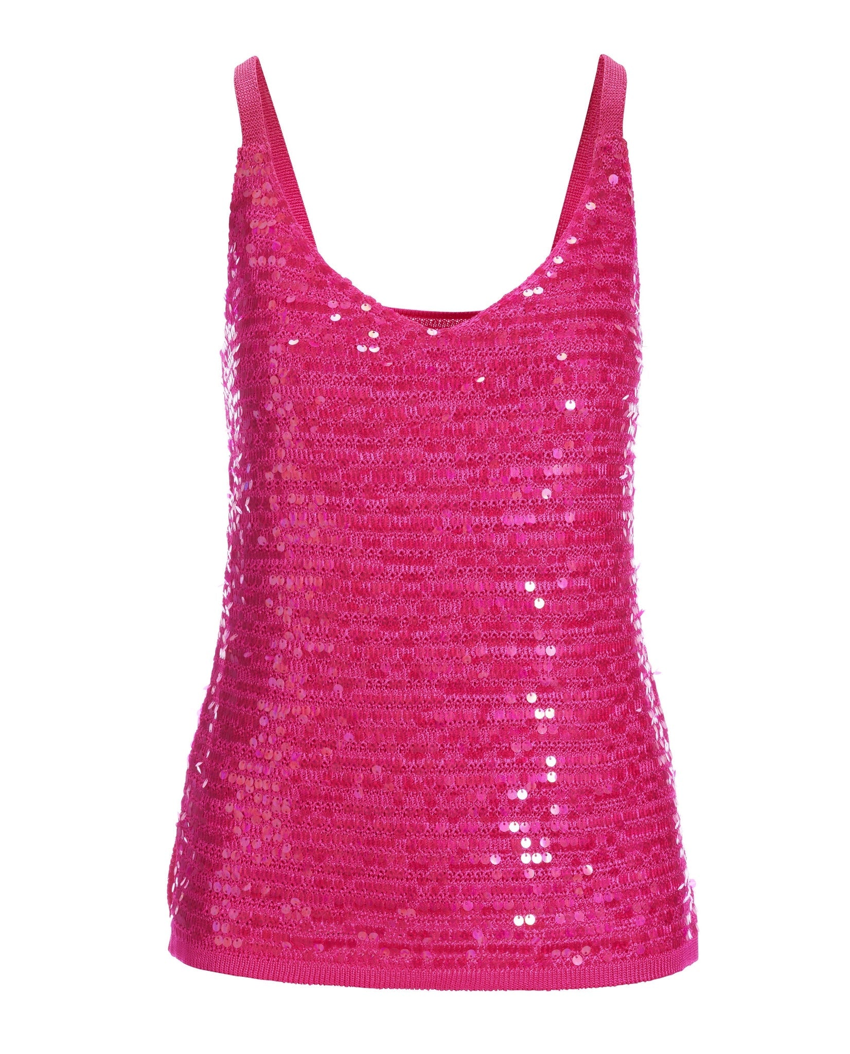 Lending glam style to denim, slacks, shorts and skirts, this exceptionally versatile sequin V-neck sweater tank will be a wardrobe go-to from season to season.