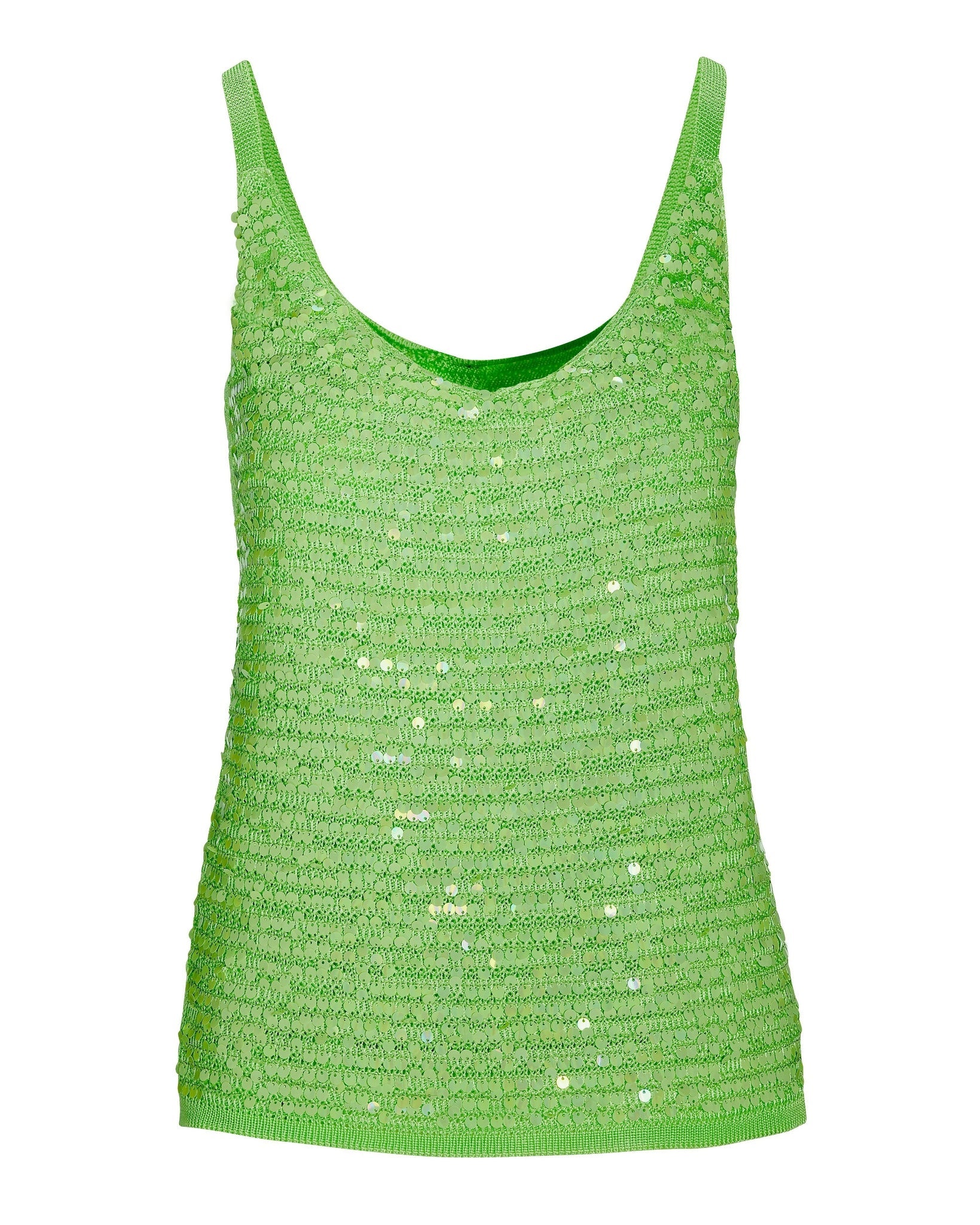 Sequin V-Neck Sweater Tank Green