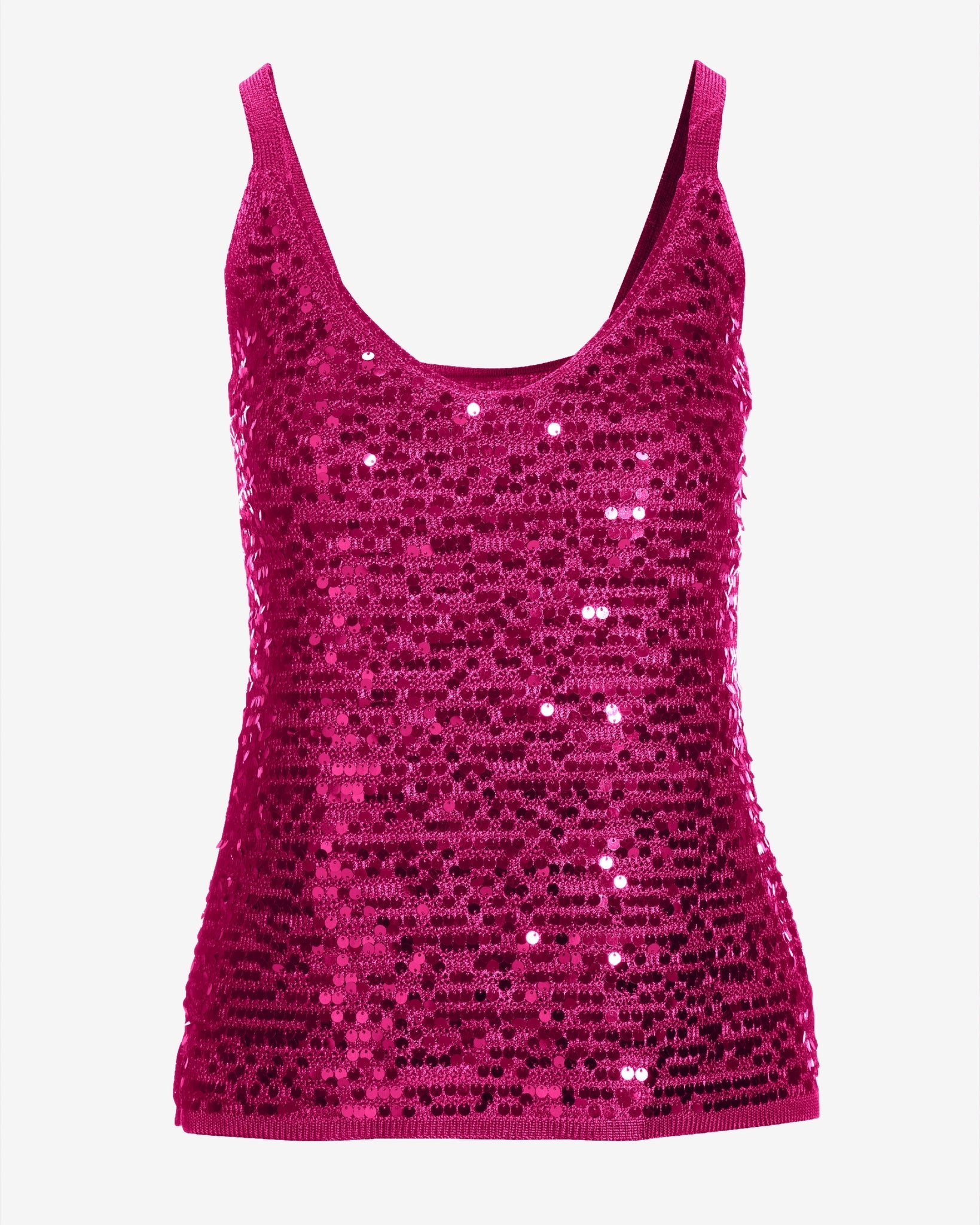 Lending glam style to denim, slacks, shorts and skirts, this exceptionally versatile sequin V-neck sweater tank will be a wardrobe go-to from season to season.