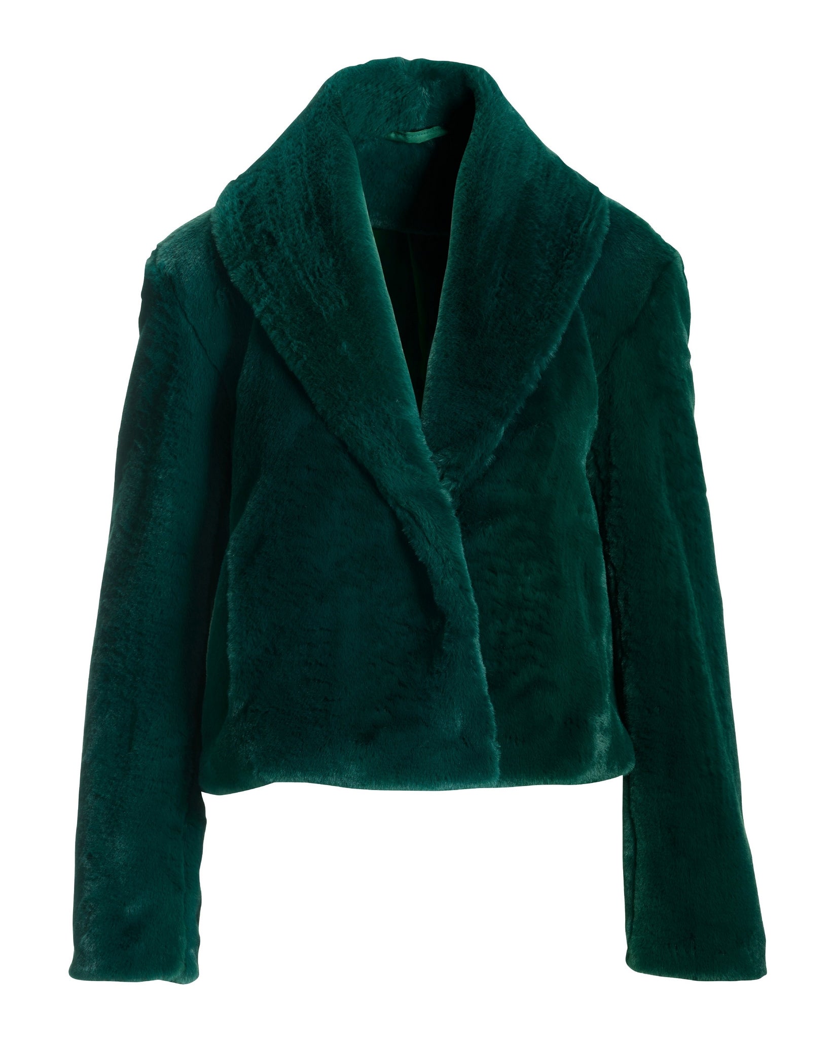 Shawl Collar Versatile Faux Fur Chubby Deep Emerald
