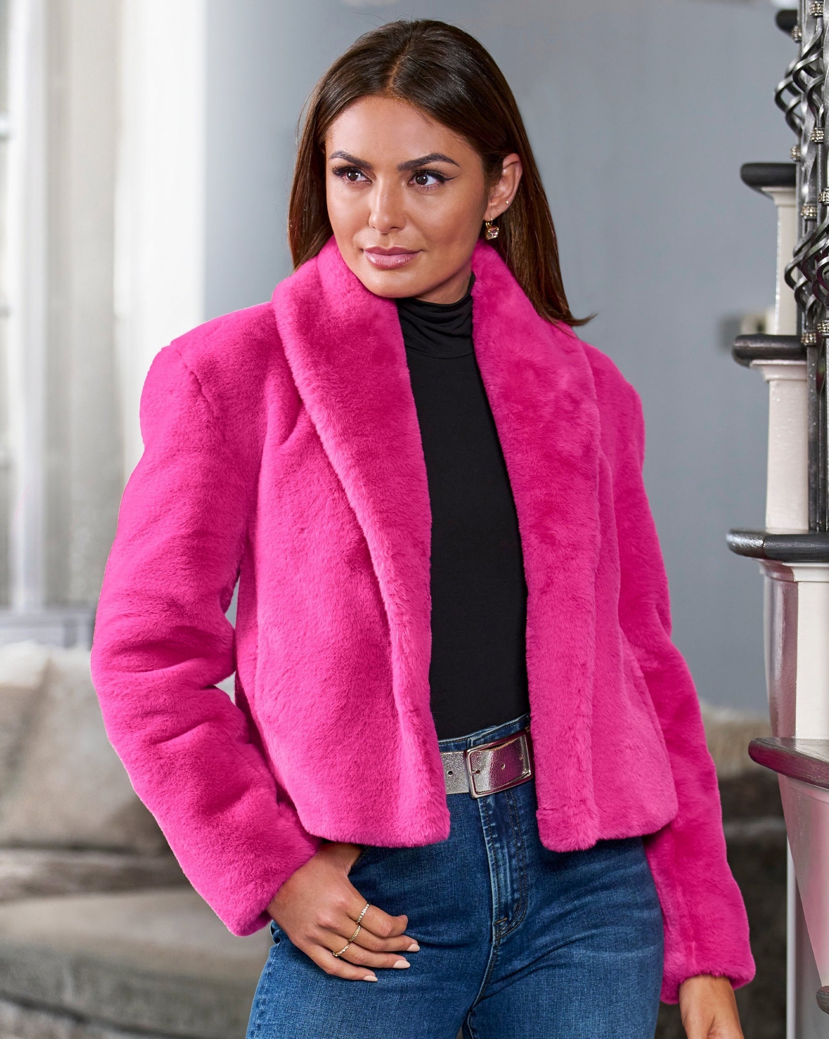Shawl Collar Versatile Faux Fur Chubby Pink Peacock
