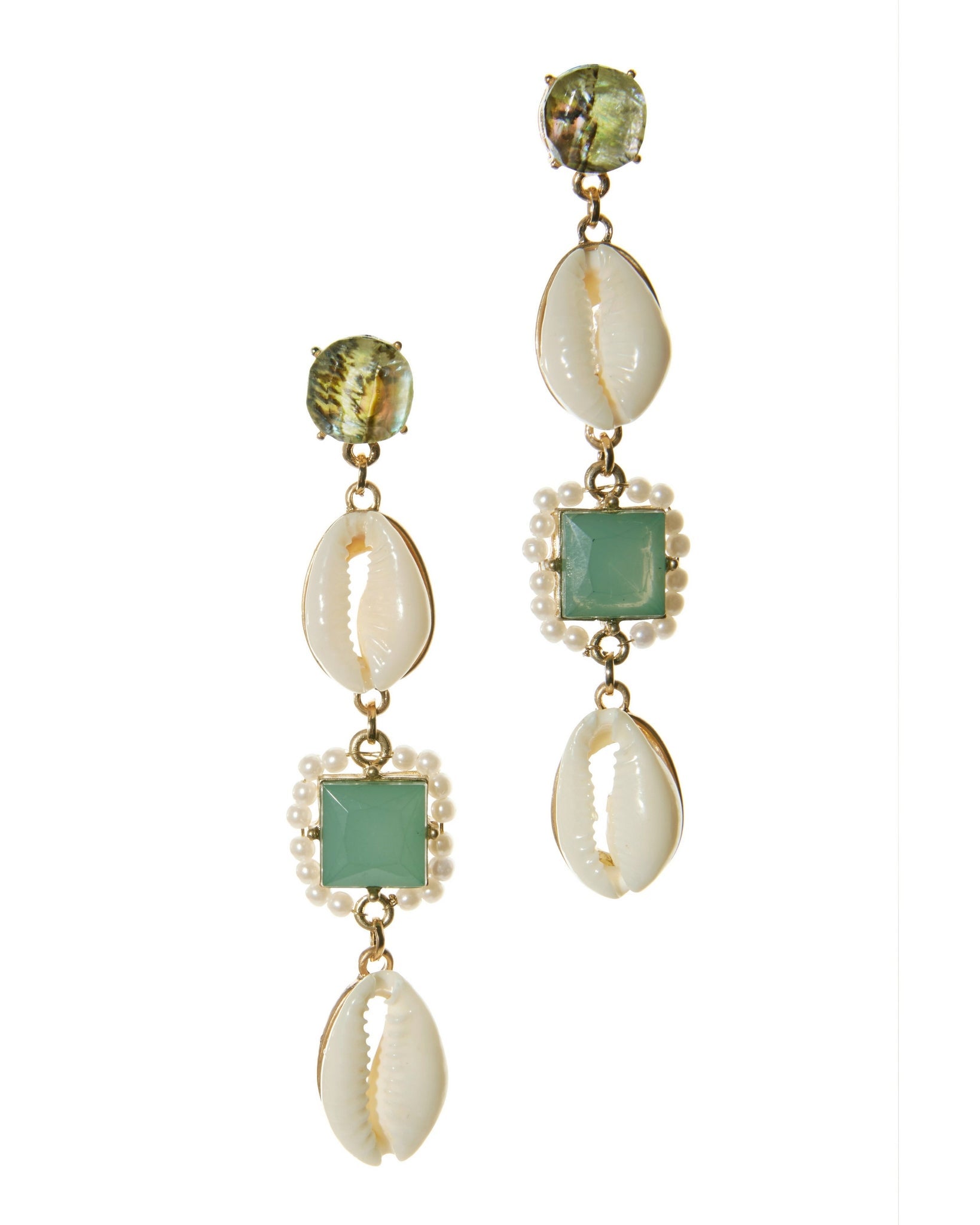 Lovely lightweight drop earrings boast a mix of seashells, gems and petite pearls to create a harmonious summertime accessory.