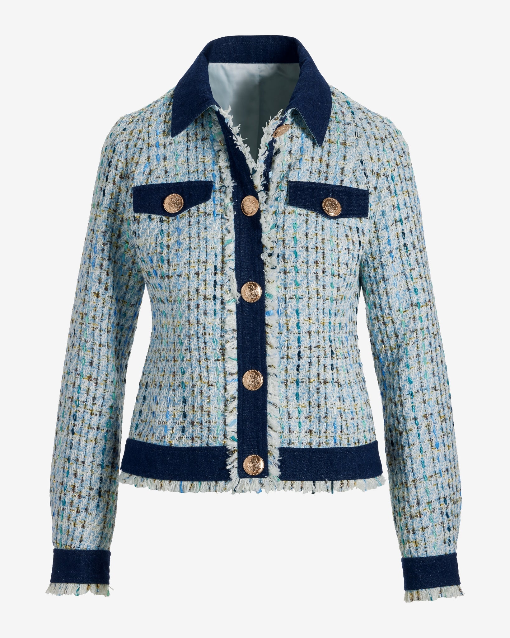 Shimmer Tweed Denim Trim Jacket Light Blue Multi