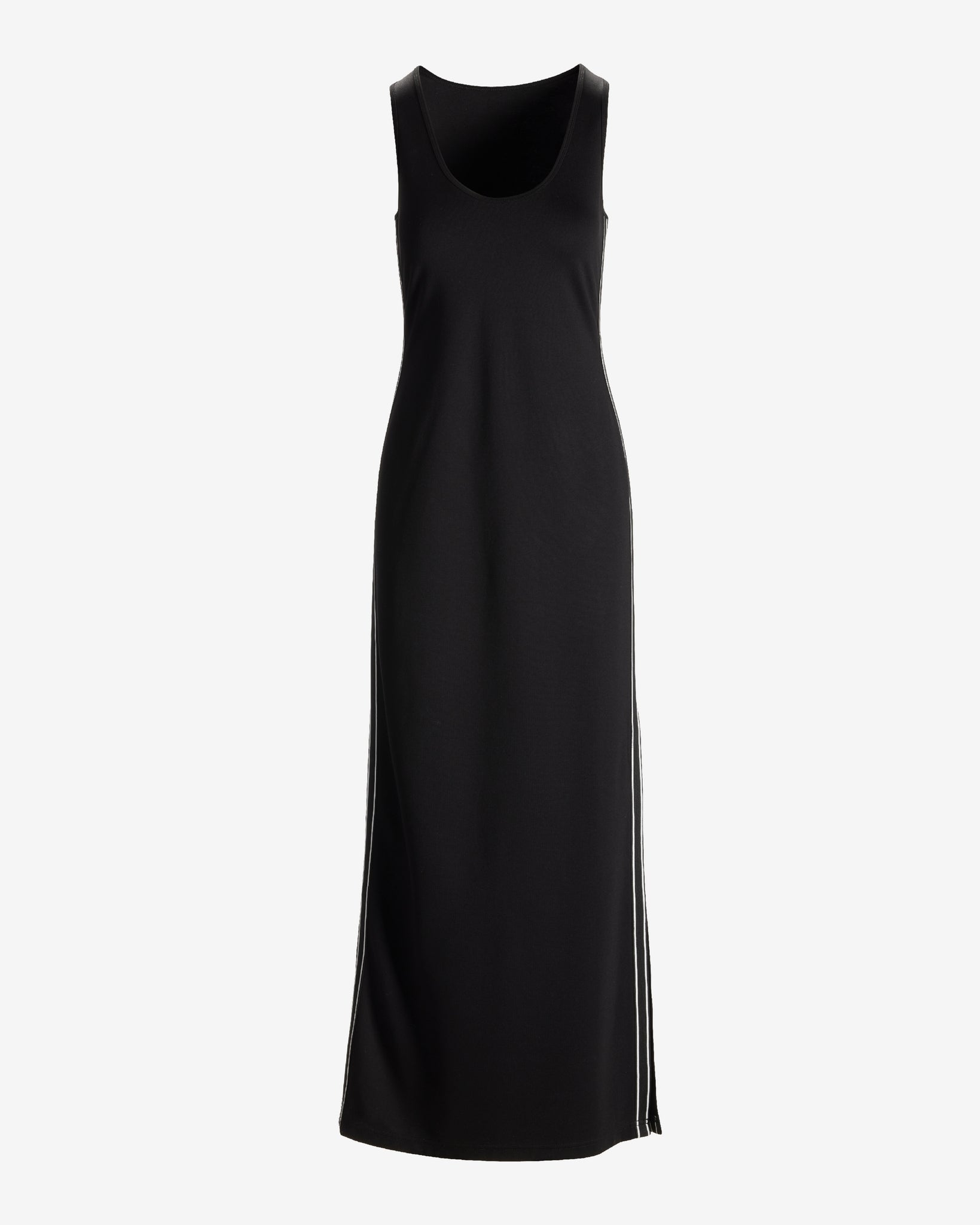 Elevate your casual wardrobe with our Side Stripe Maxi Sport Dress. Featuring a sleek sleeveless design and a scoop neckline, this dress is detailed with bold side stripes and a left-side slit for a sporty touch. Its easy pullover style ensures effortless, everyday wear.