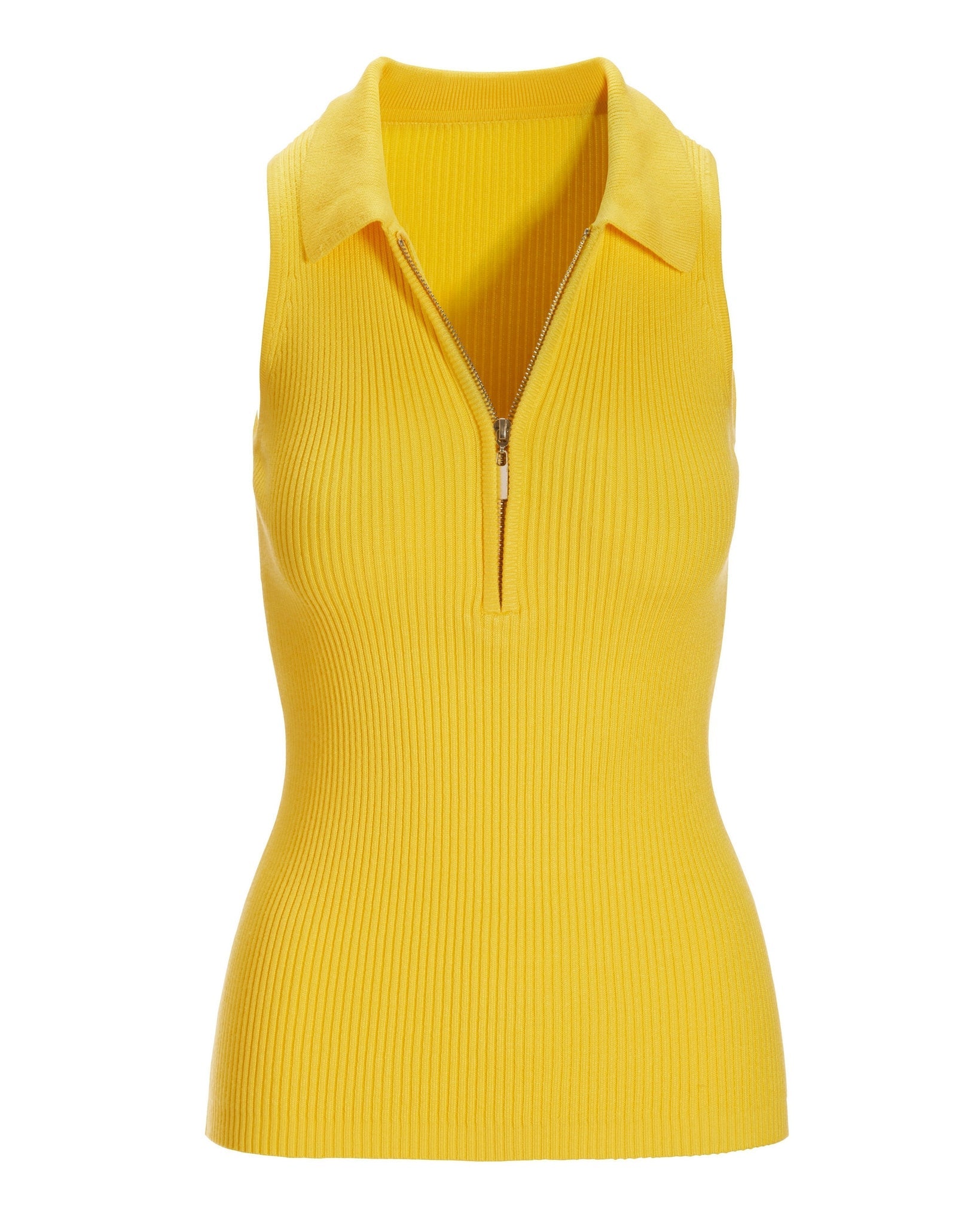 Sleeveless Ribbed Half-Zip Sweater Lemon Zest