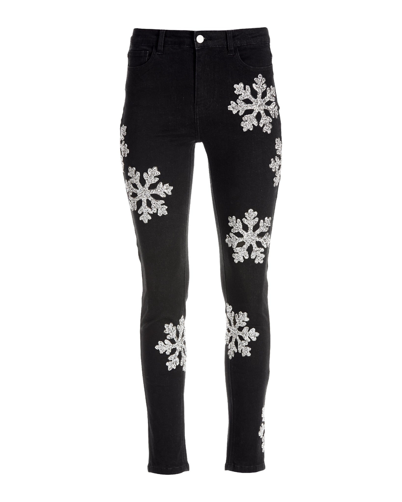 Create blue-jean envy with our crystal-encrusted snowflake ankle jean. Designed with a hint of stretch, this sparkly skinny jean is ready to dress up or dress down for any occasion. Length measures to the ankle with a 29-inch inseam.