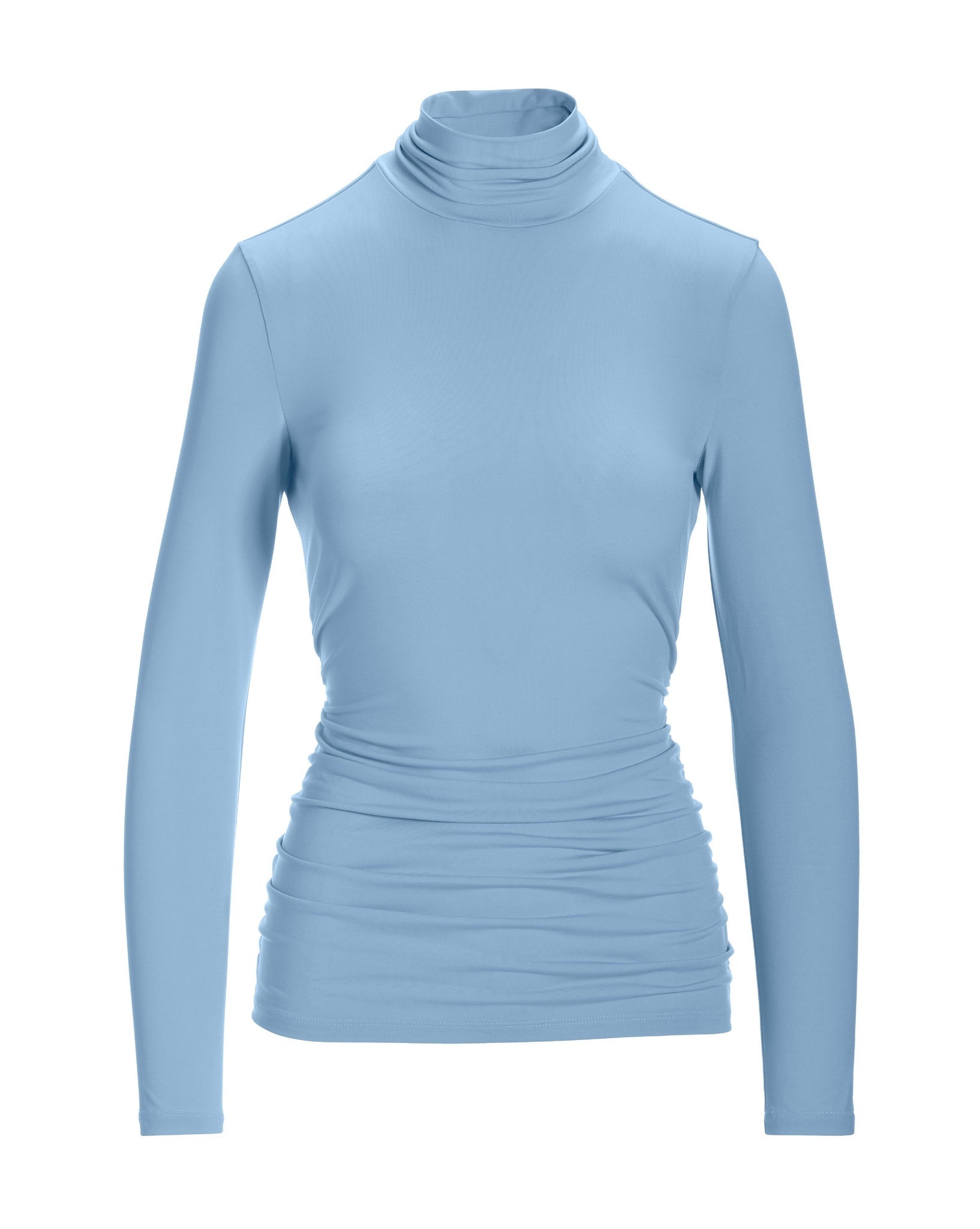 This versatile long-sleeve knit top effortlessly combines comfort and style. The ruched detailing flatters the figure, while the turtleneck keeps you cozy and on-trend. Elevate any ensemble with this must-have wardrobe staple.