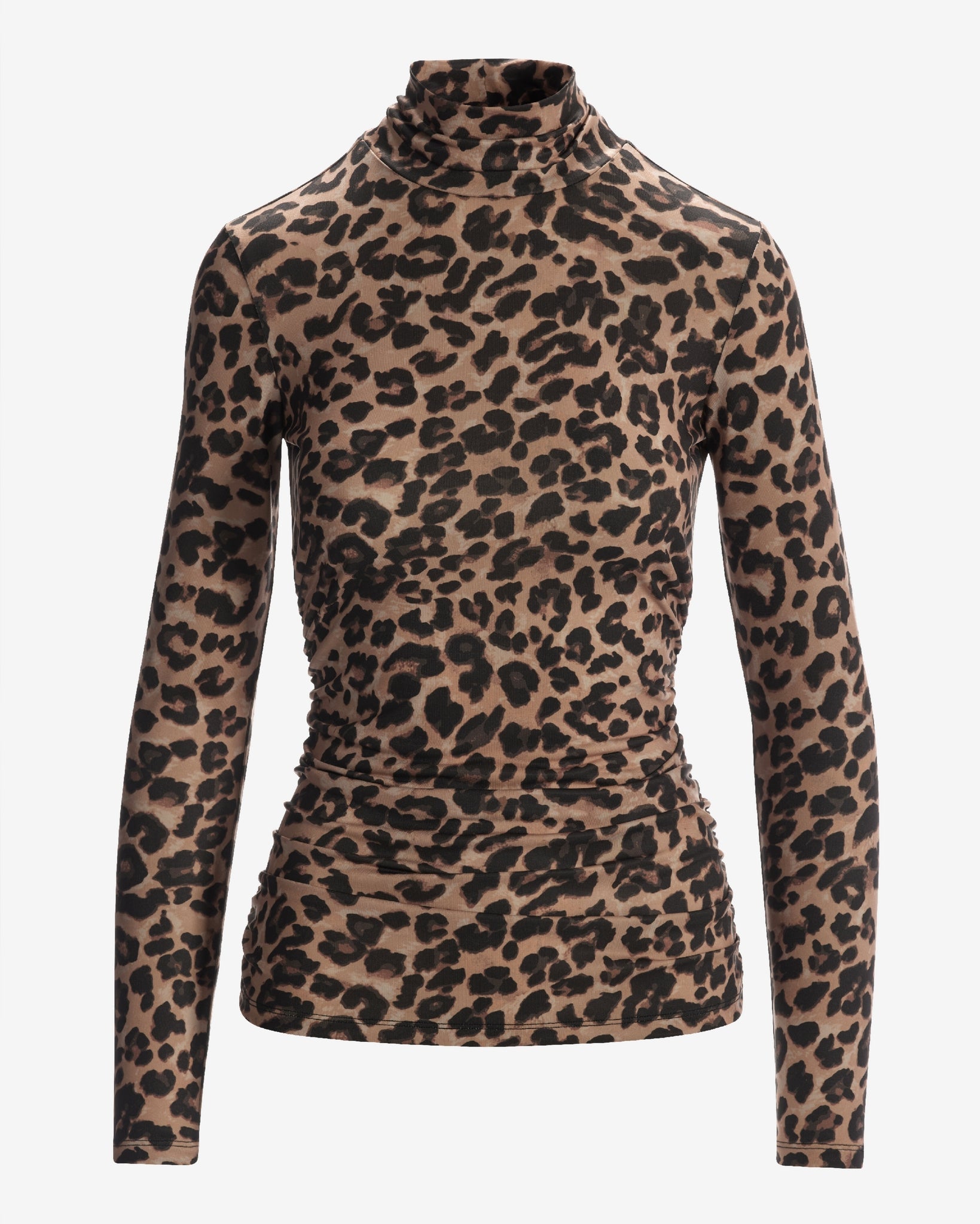So Chic Winter Cheetah Ruched Turtleneck Top Brown