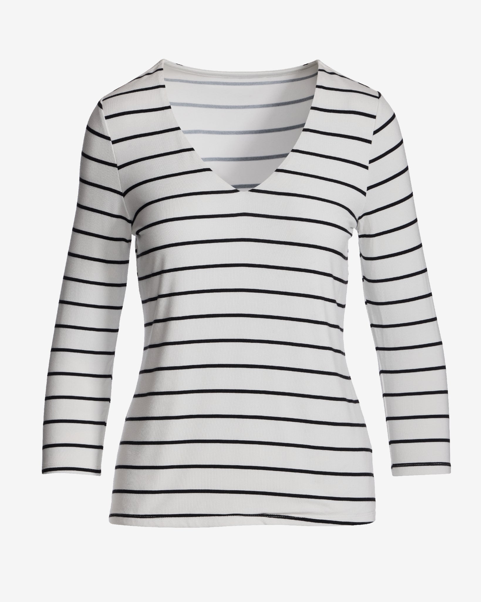 So Effortless Print V Neck Three Quarter Top Thin Stripe