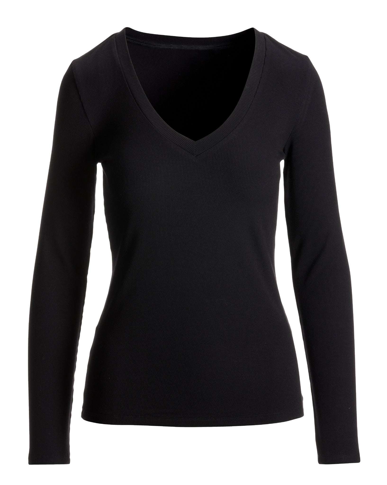 So Essential Ribbed V Neck Long Sleeve Top Proper Black