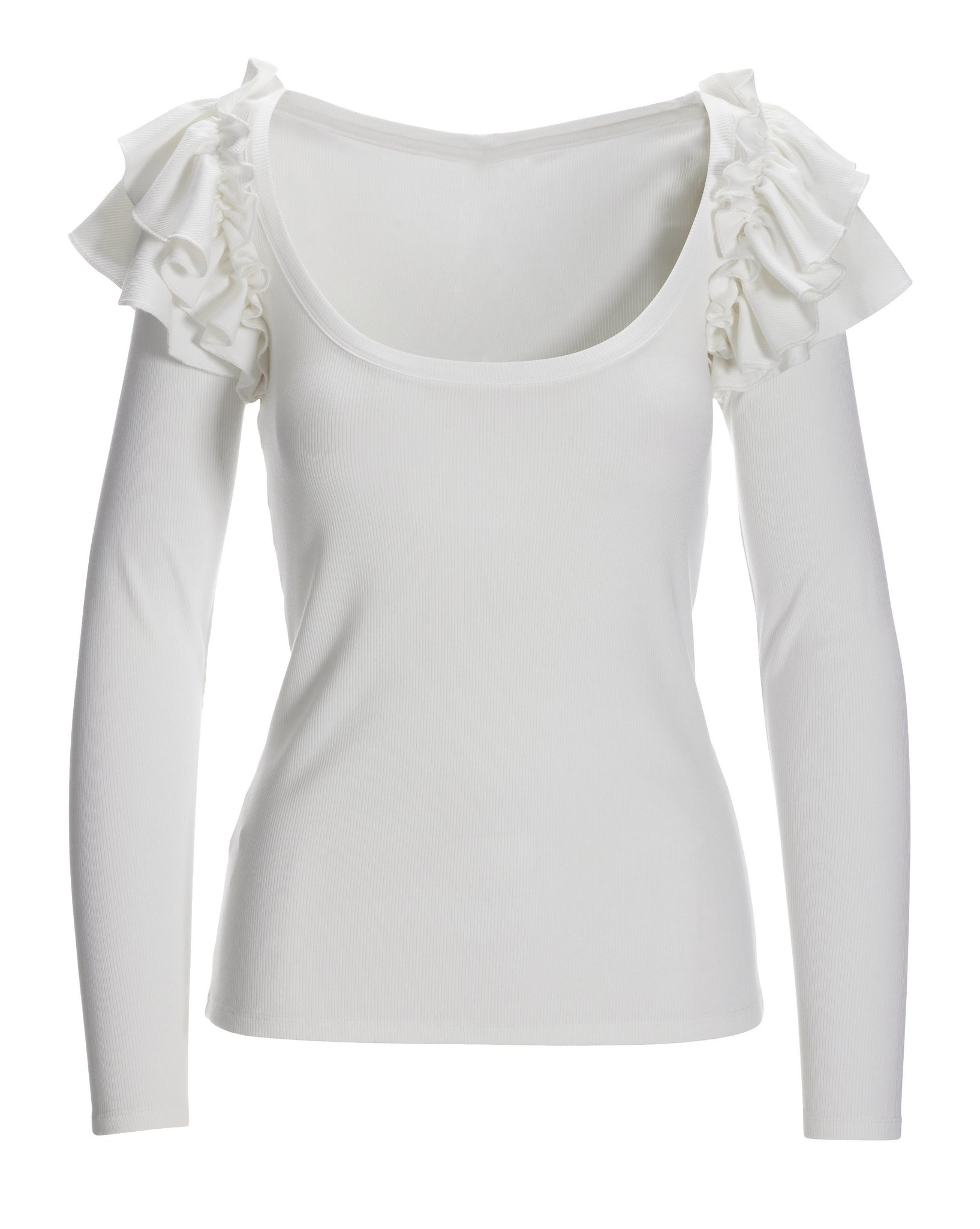 So Essential Ruffle Ribbed Long Sleeve Top White