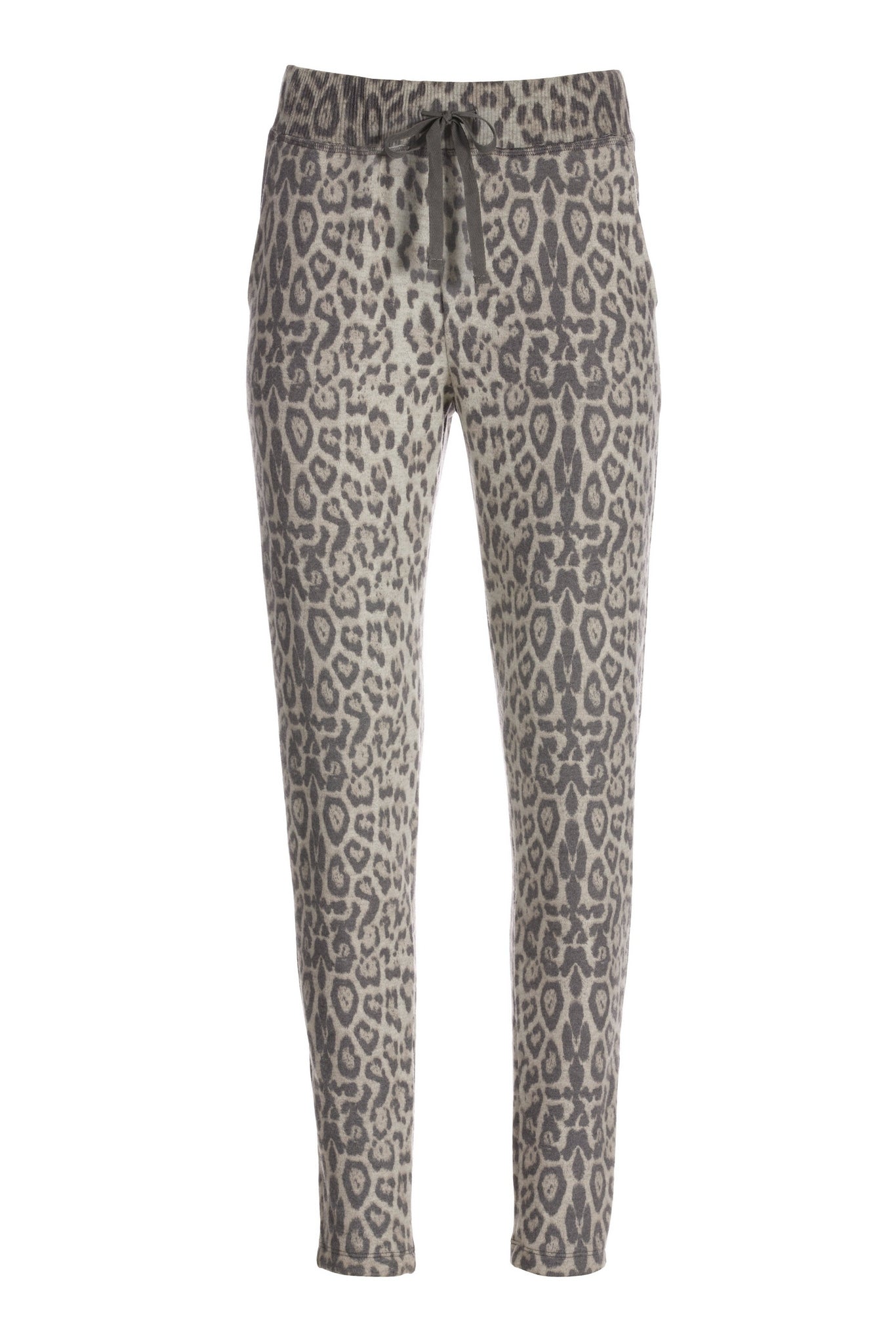 An elevated knit lounge pant with a luxurious so soft feel, an effortless drawstring waist and a slim silhouette in an easy stretch fabrication and eye-catching leopard design is ready to wear and pair with our So Soft Slouchy Knit Animal Sweatshirt or your favorite tanks and tees.