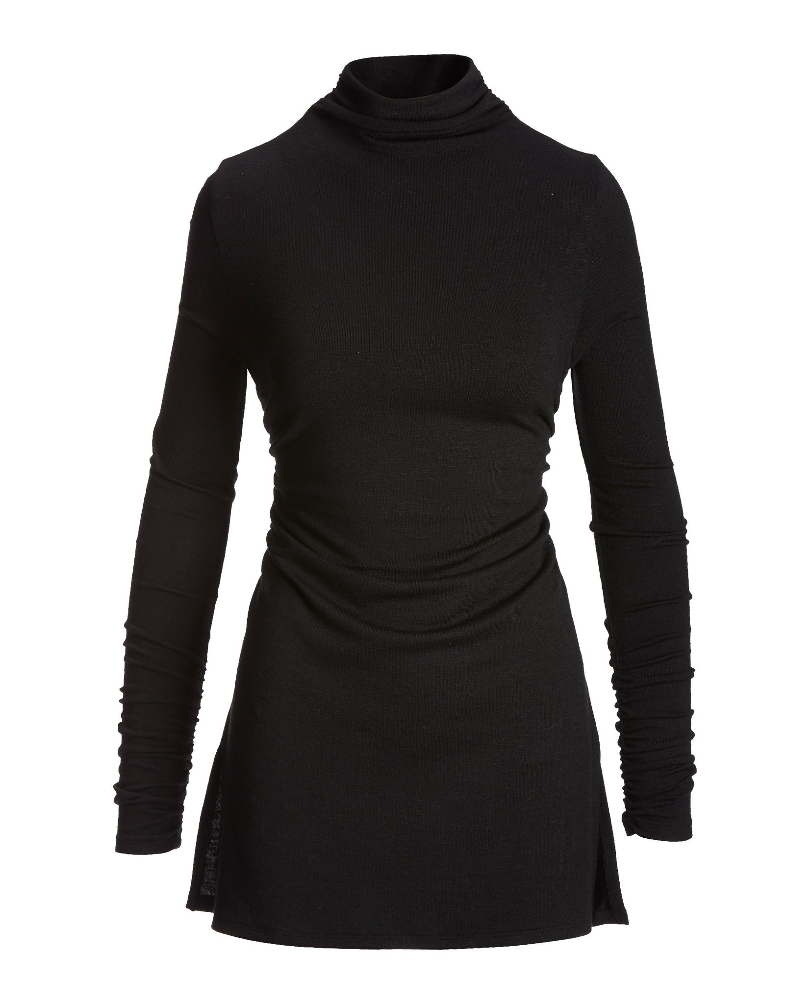Your new essential for the ultimate in everyday style, our ultra-soft tunic top has all the figure-flattering details slimming ruched sides and a comfortable split hemso you'll be layering this long-sleeve knit pullover with all of your skinny denim and sleek leggings.
