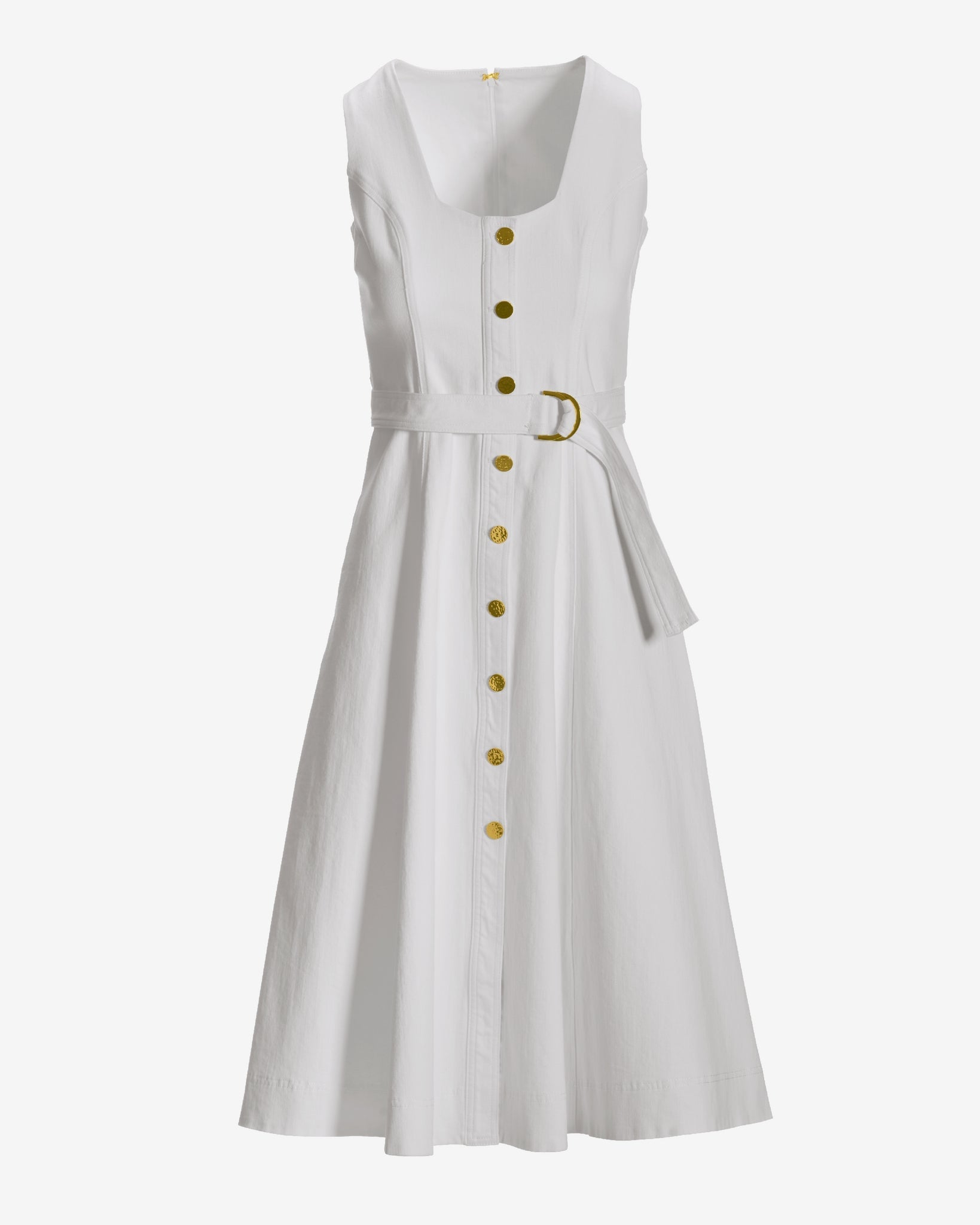 Our Square Neck Button-Up Denim A-line Midi Dress is your new daytime essential. With its flattering A-line silhouette and versatile button-up design, this chic denim dress effortlessly transitions from workdays to weekend plans with modern elegance.