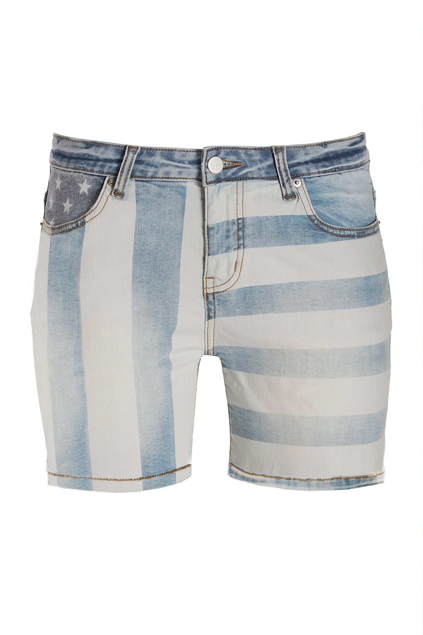 These comfy cotton shorts (with a hint of spandex stretch) are cut in our favorite boyfriend silhouette with distressed details and a frayed hem for a vintage-inspired look. Sun-faded stripes and a star-patterned pocket insert are the perfect look for summer holiday celebrations... and all season long.