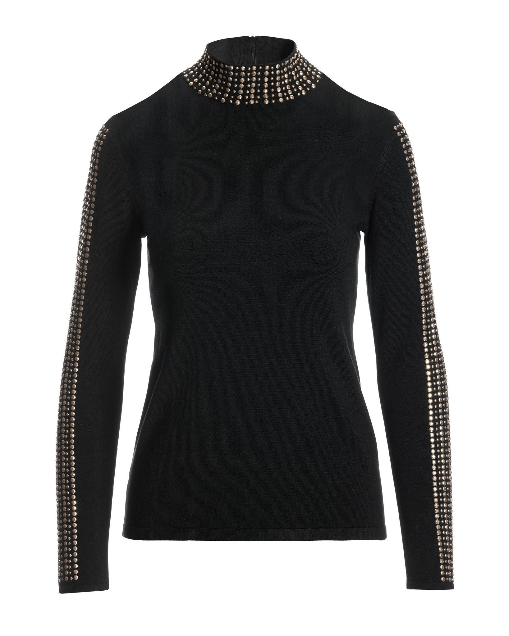 Experience the perfect blend of comfort, fashion and attitude. Crafted with attention to detail, this studded turtleneck sweater features a luxe soft fabric that skims your body, providing warmth and coziness on chilly days. Versatile and easy to style, this pullover pairs effortlessly with your favorite jeans for a casual daytime look or can be dressed up with a skirt and heels for a night out.