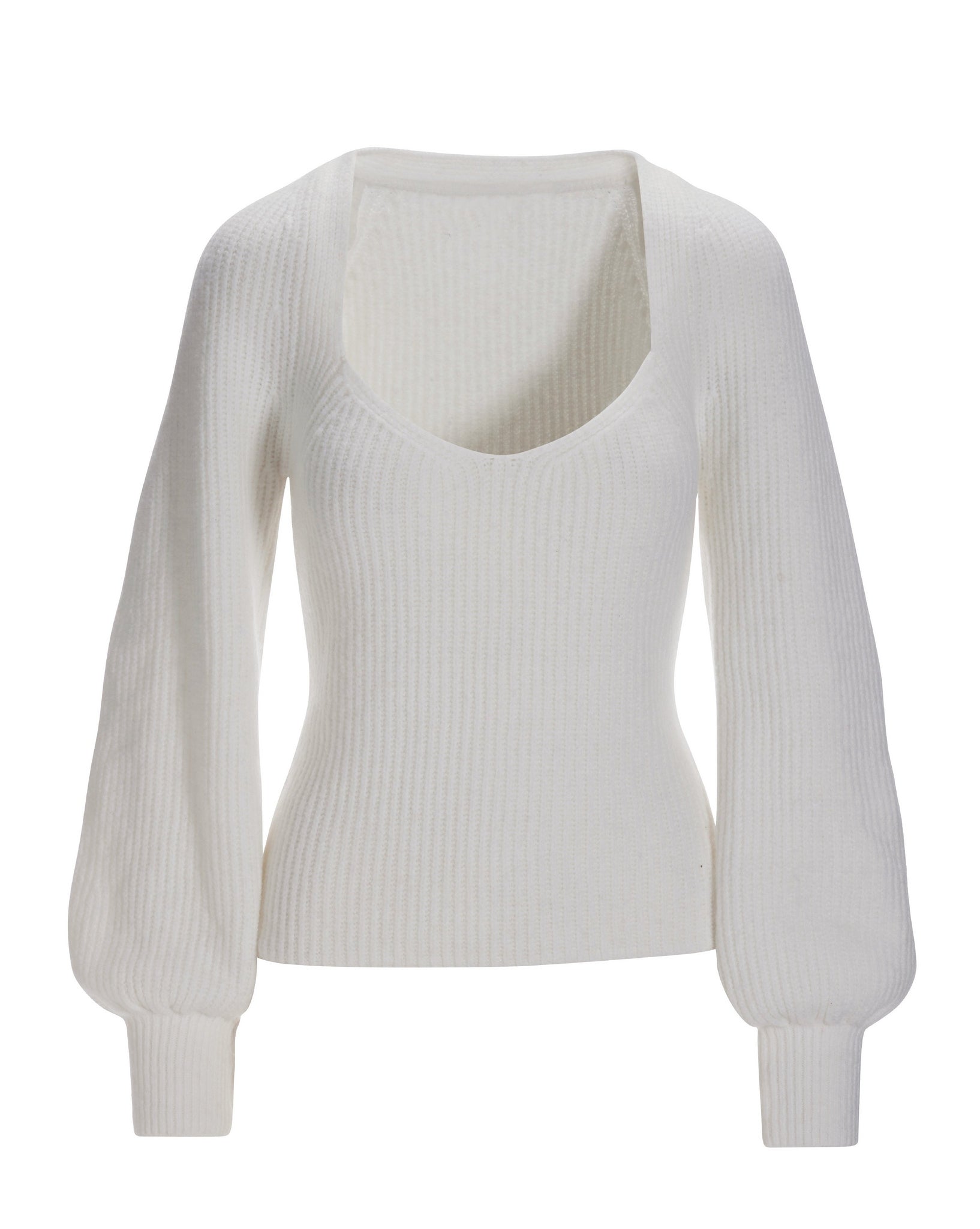 Sweetheart Neckline Shaker Stitch Sweater Off White