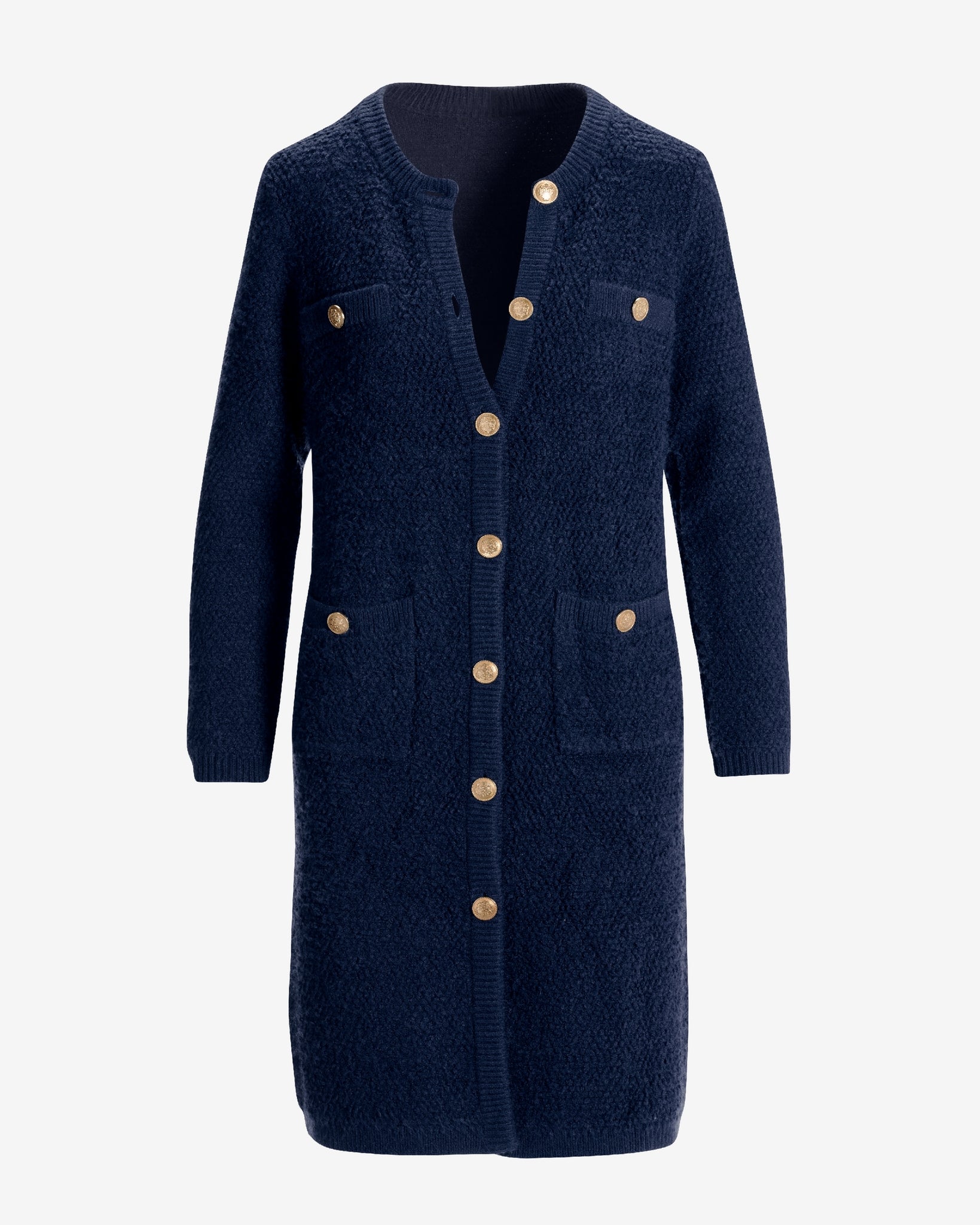 A versatile silhouette for layering, our Textured Button Detail Sweater Duster adds warmth and rich tactility to any outfit. With the addition of crested buttons and generous pockets, this cozy piece becomes a hero for elevated cold-weather styling.