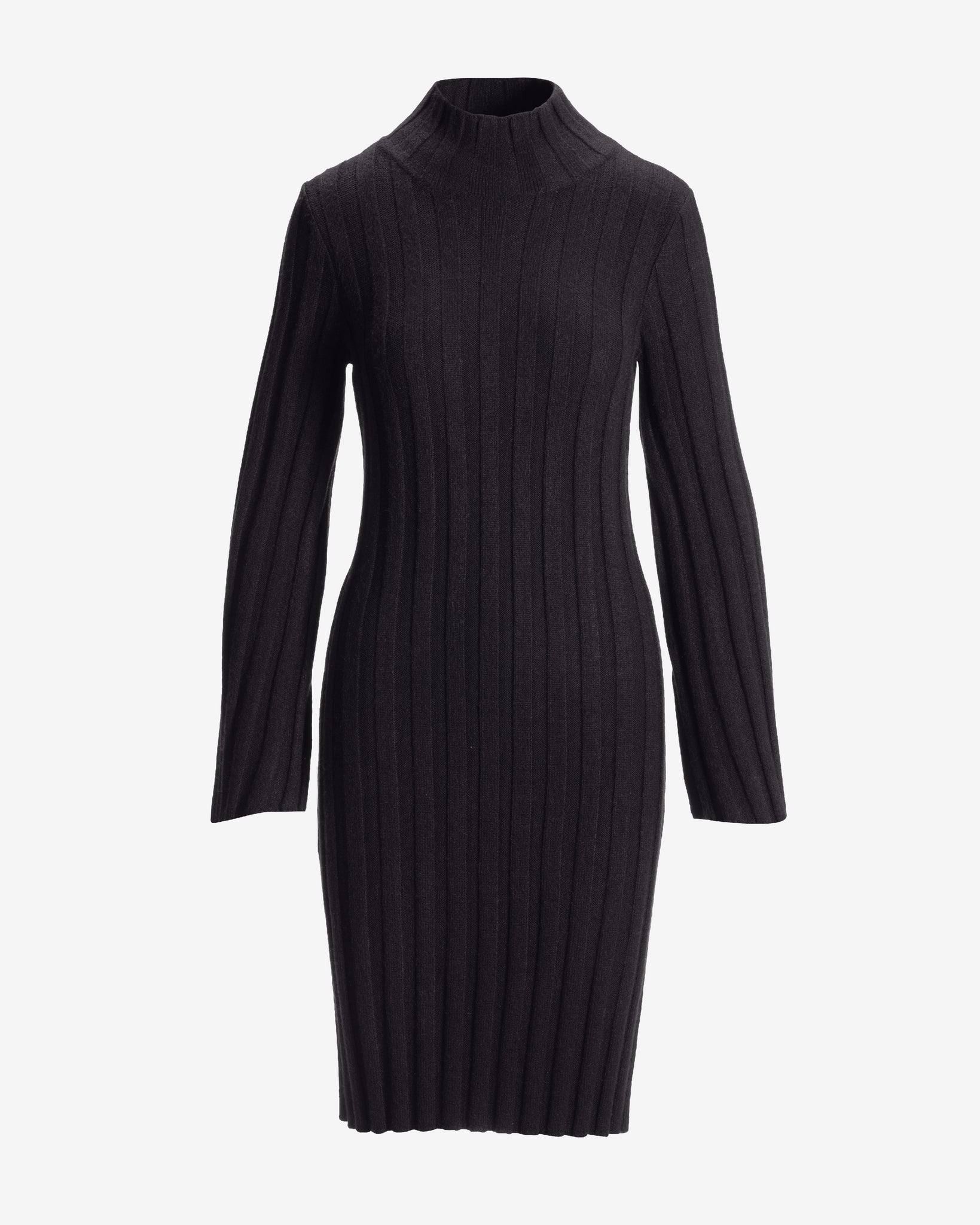 Turtleneck Bell Sleeve Wide Rib Sweater Dress Black