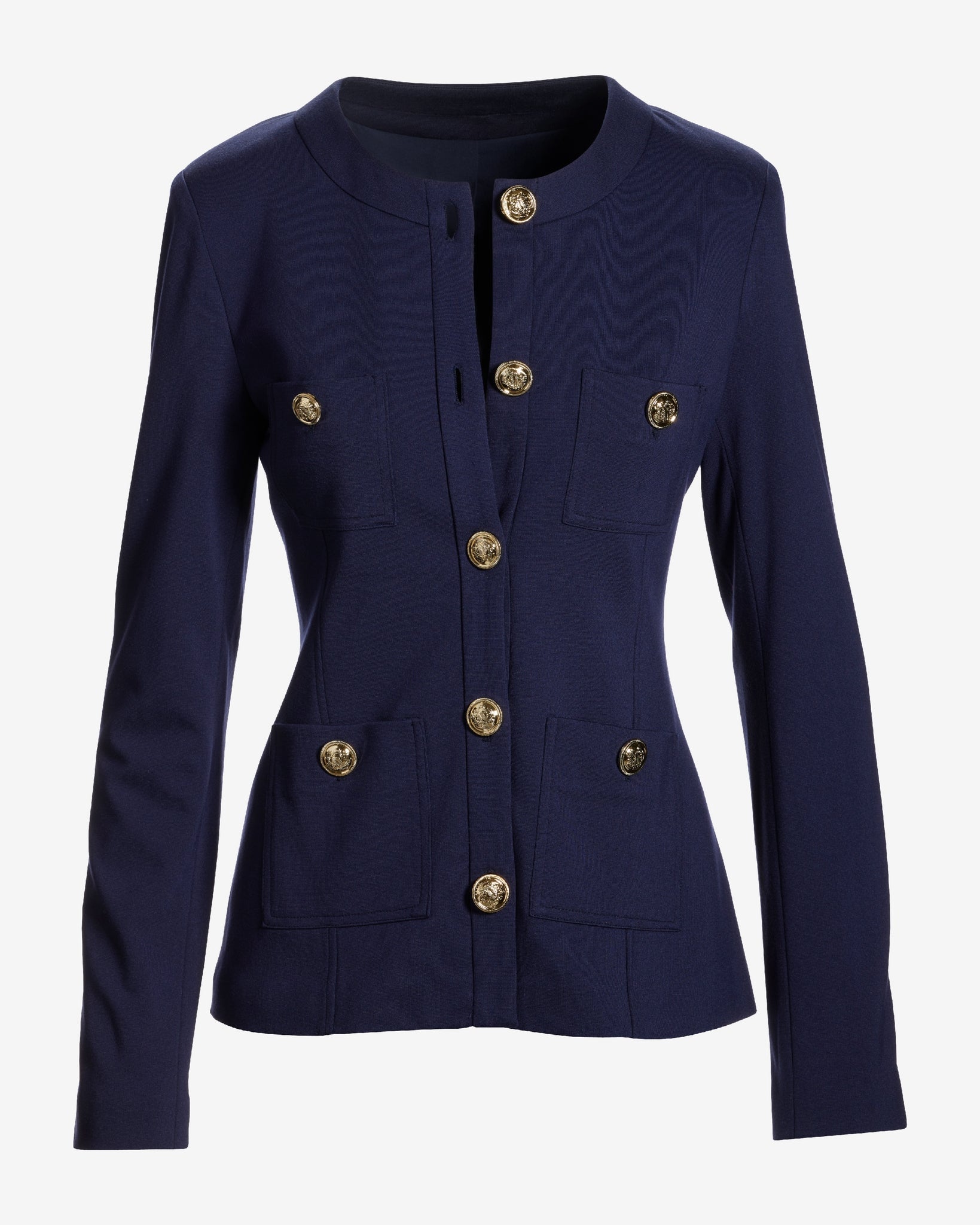 Ultimate Ponte Crest Button Collarless Jacket Navy