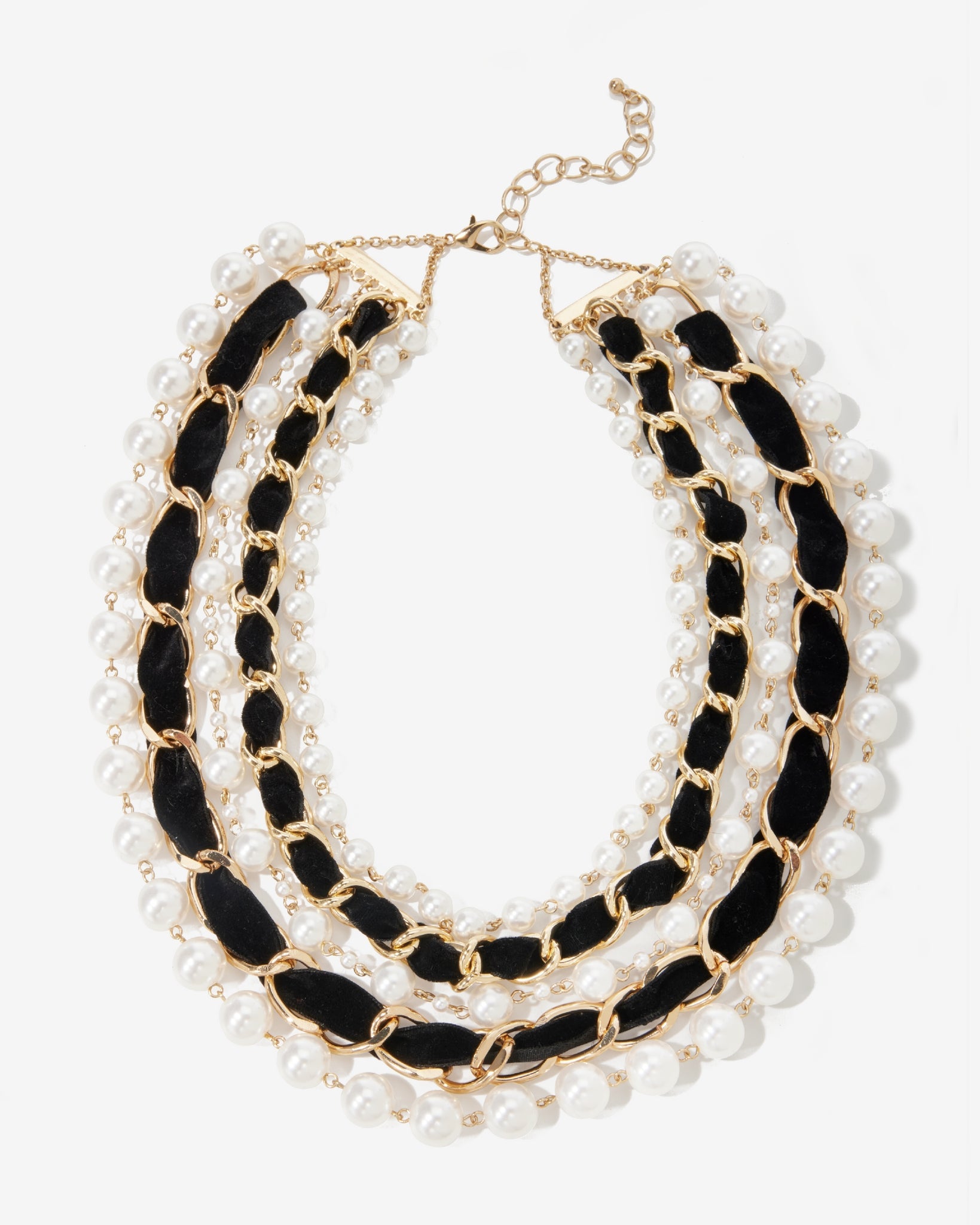Velvet Chain and Pearl Layered Necklace Black/Gold