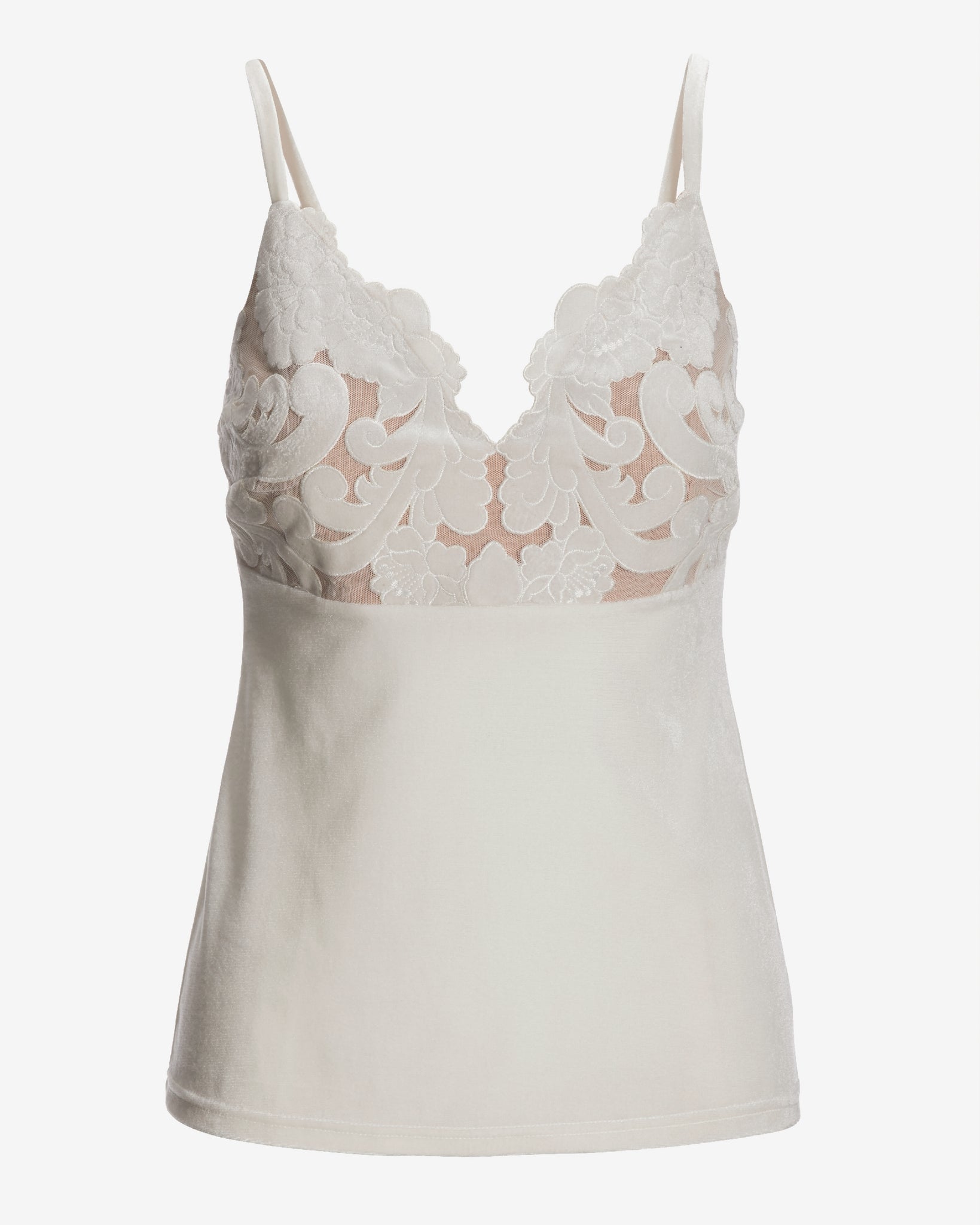 Velvet Scalloped Lace V Neck Cami Top Off White