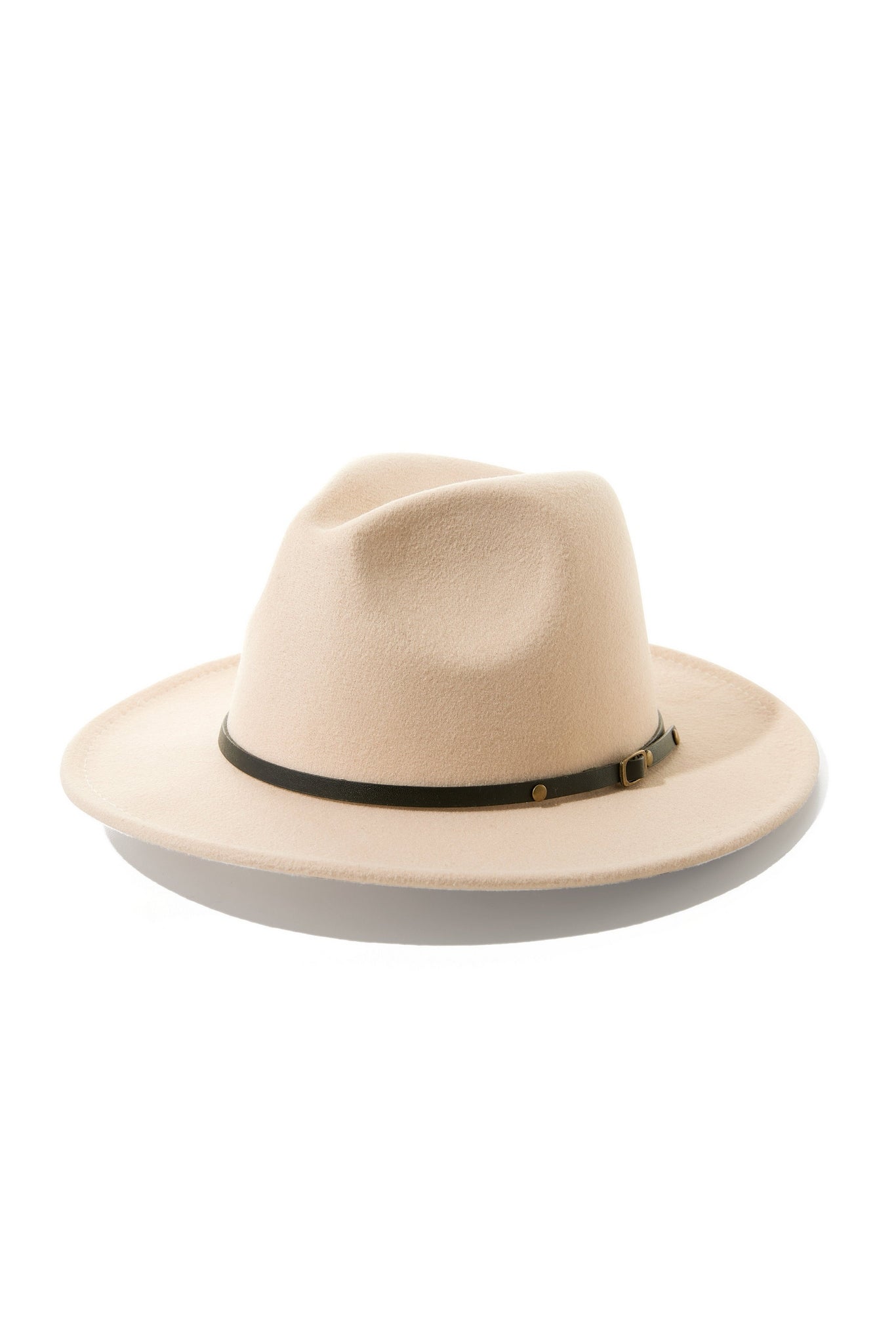 Embrace all that is fall in a versatile fedora hat detailed with a faux-leather hatband and buckle.
